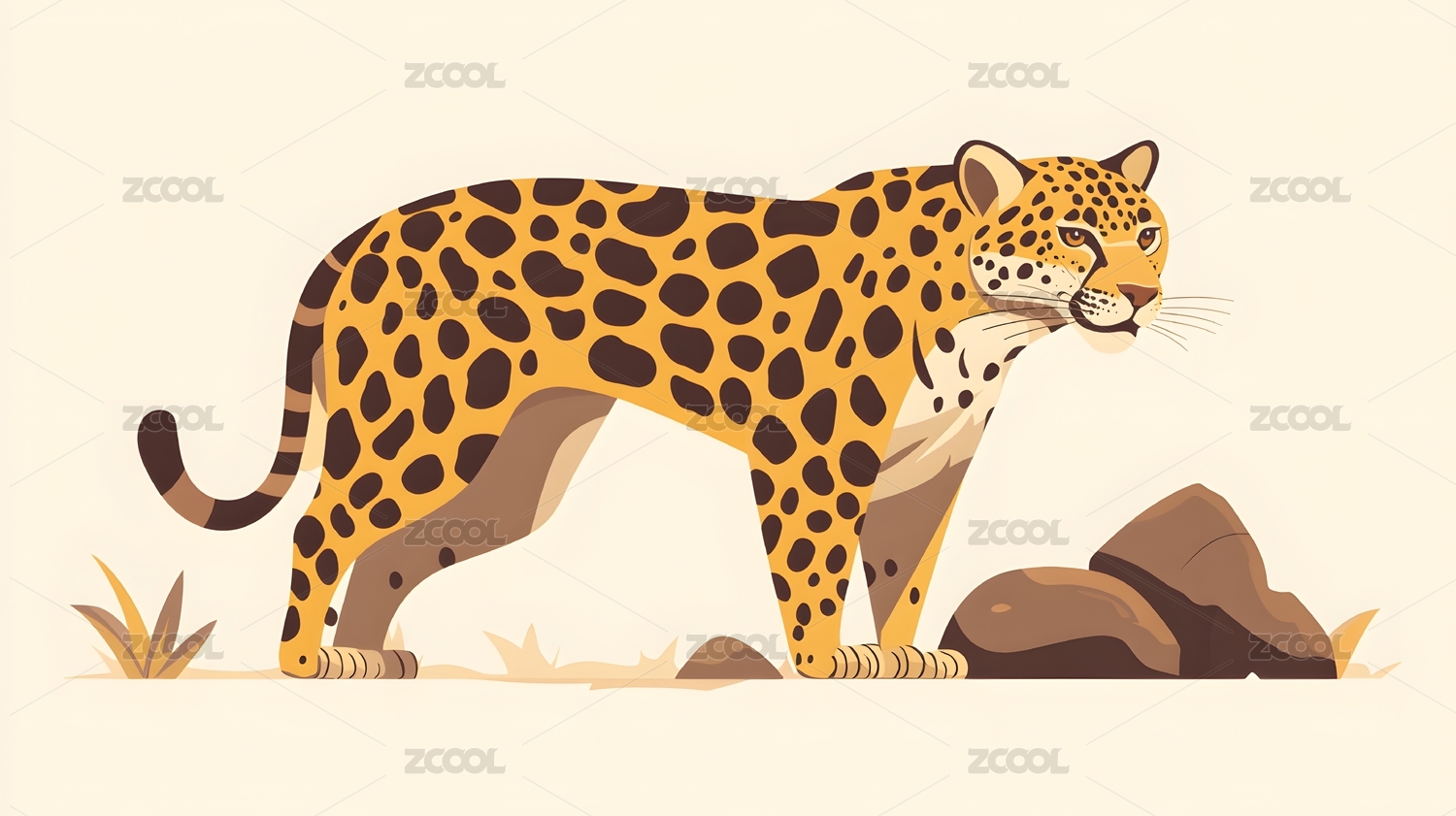 一只豹子在草原上的插画