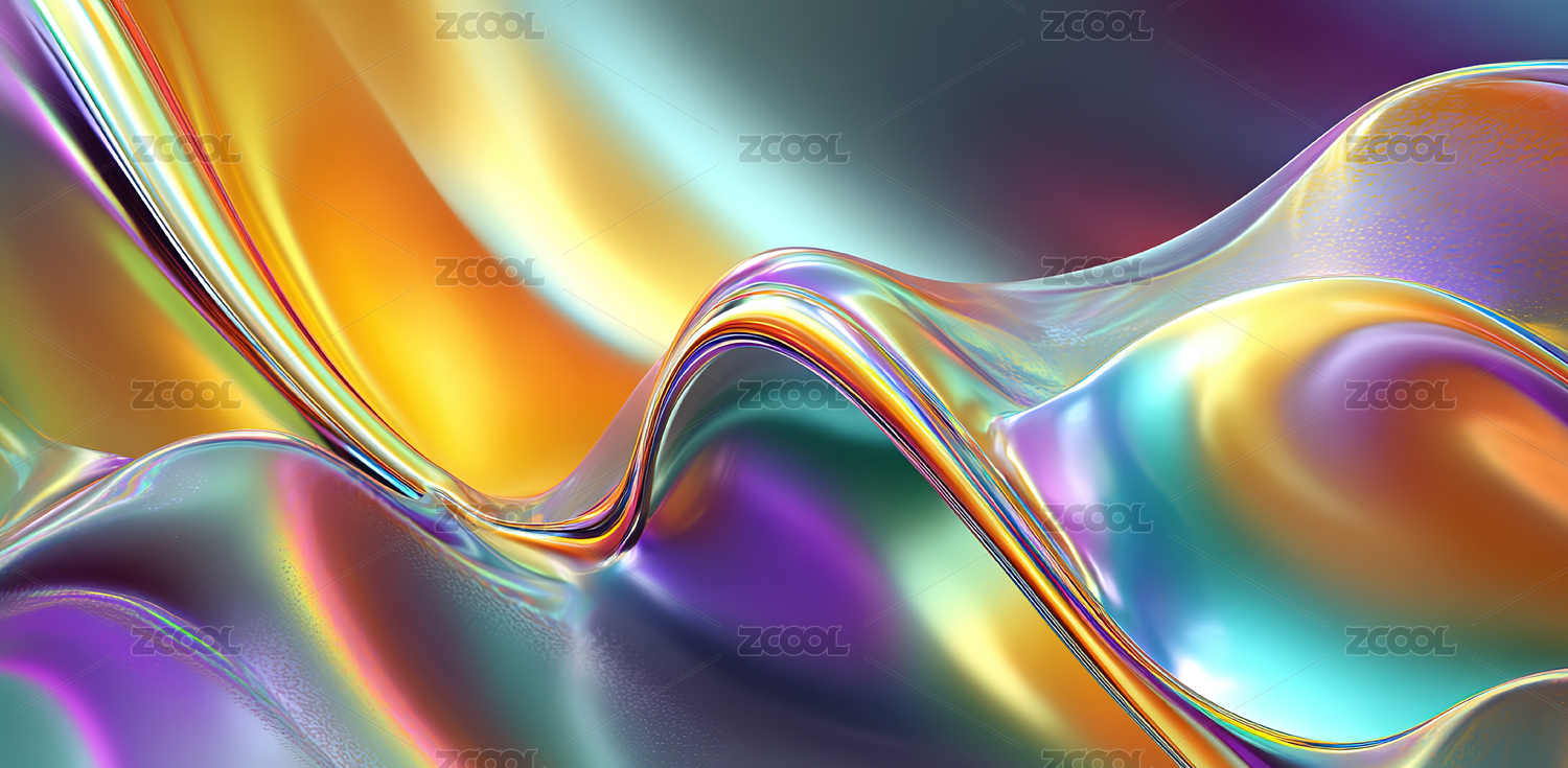 多彩渐变的流动液体,玻璃质感,抽象背景