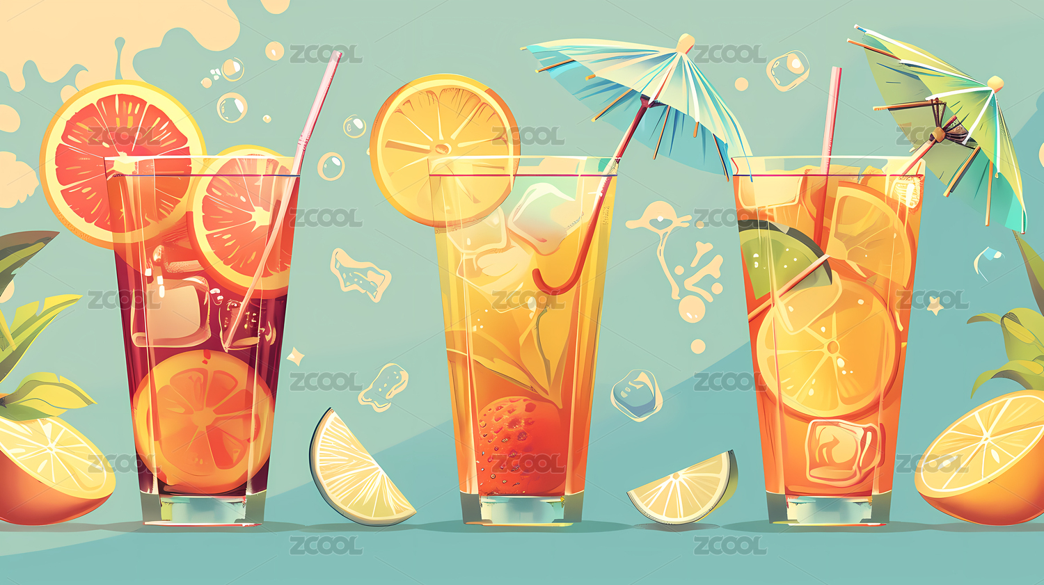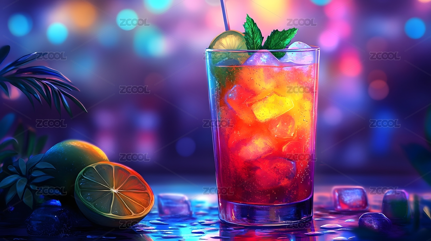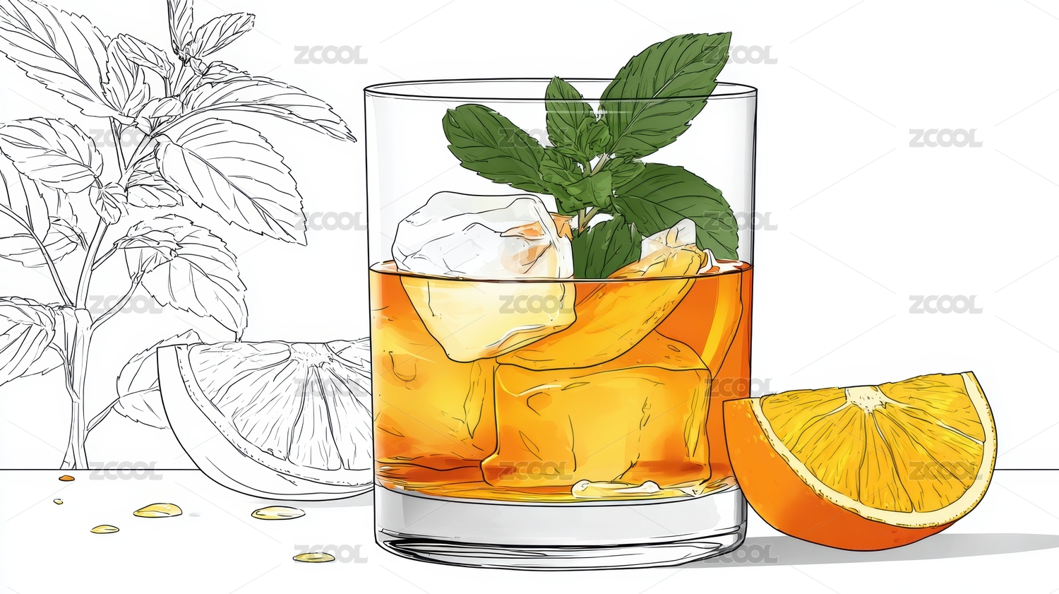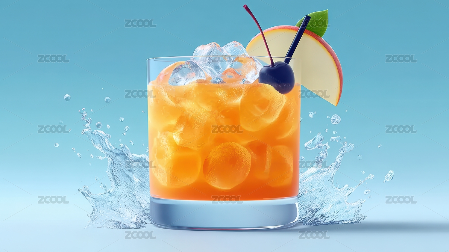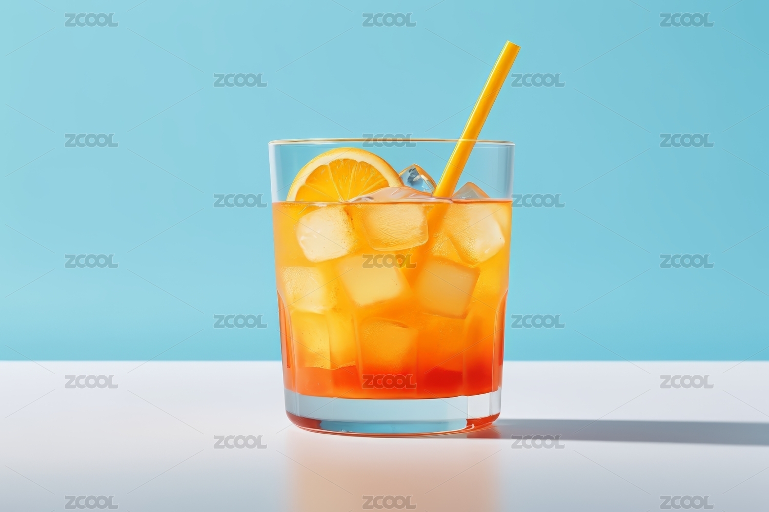 鸡尾酒,冰块,饮料,饮品,清凉,夏日,调酒,橙色,橙片,玻璃杯