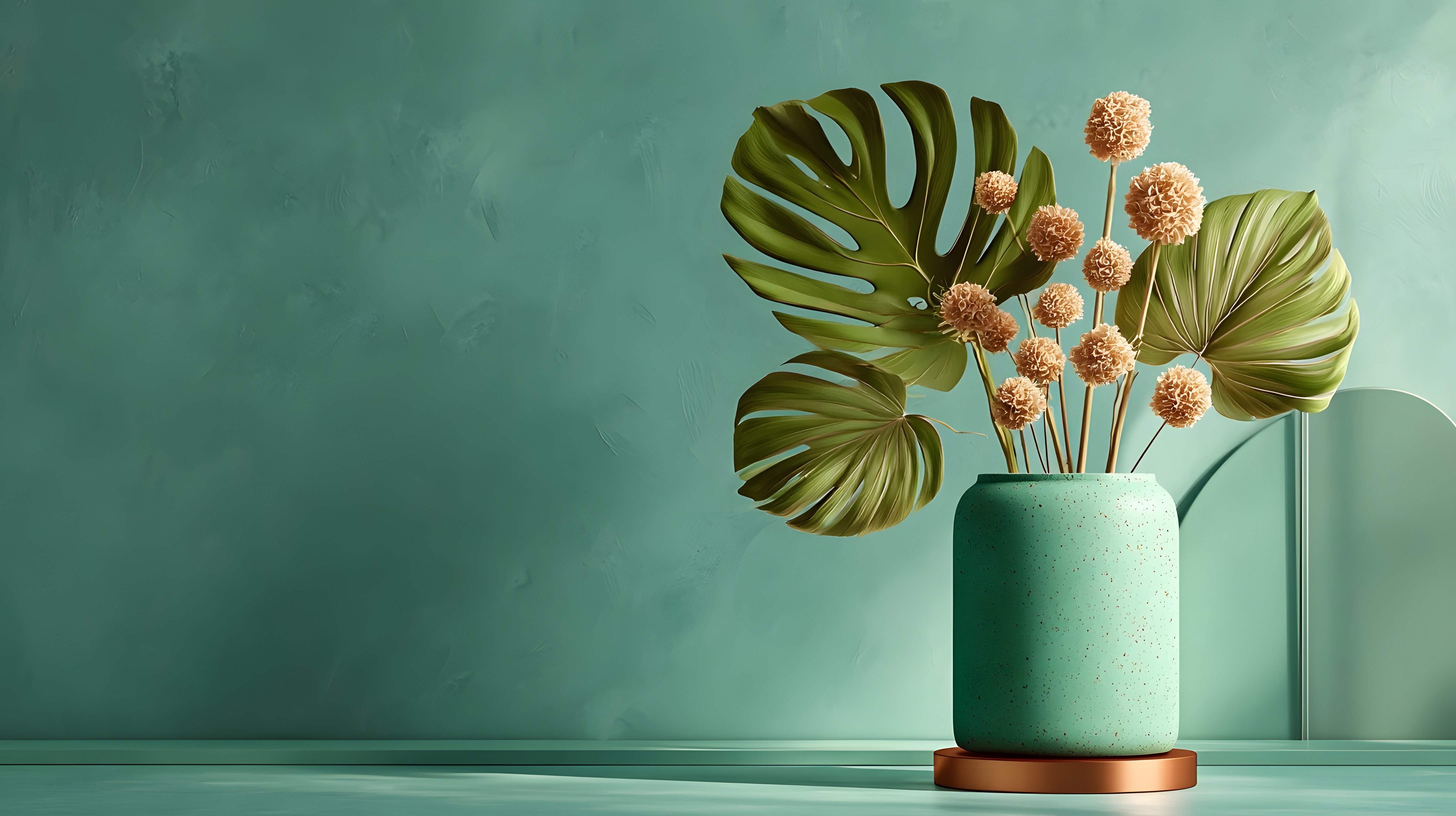 简约桌面上的几何花瓶与鲜花