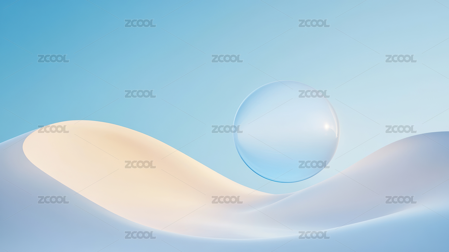 透明三维玻璃球体沙漠水晶球立体概念背景