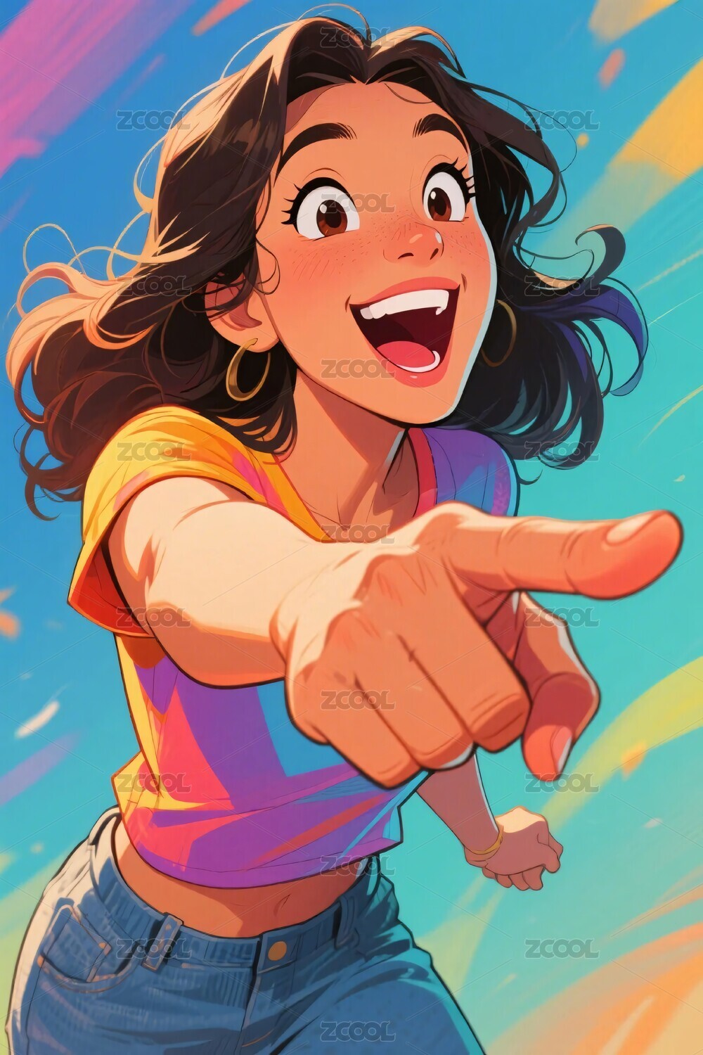 卡通女性指向画面