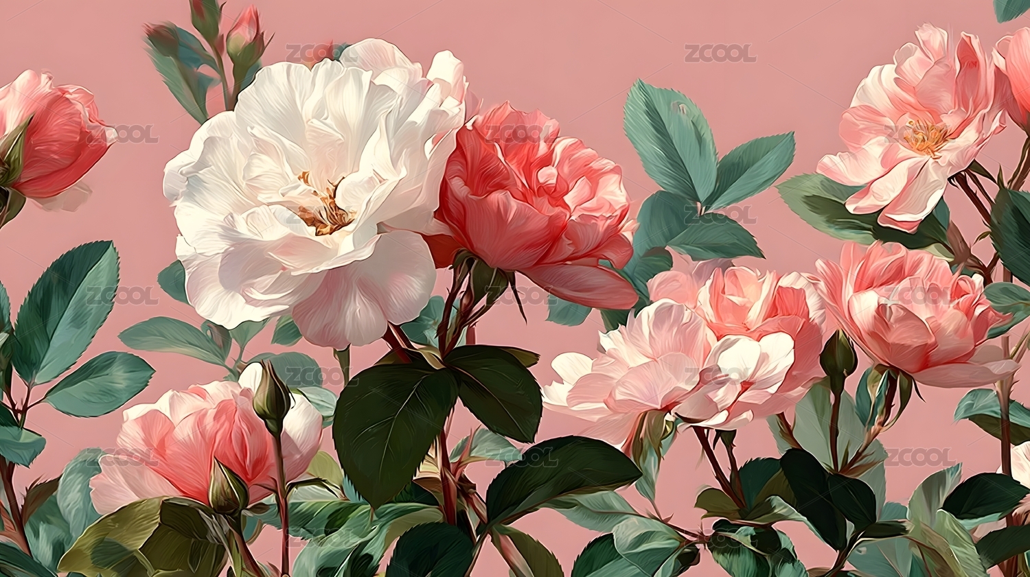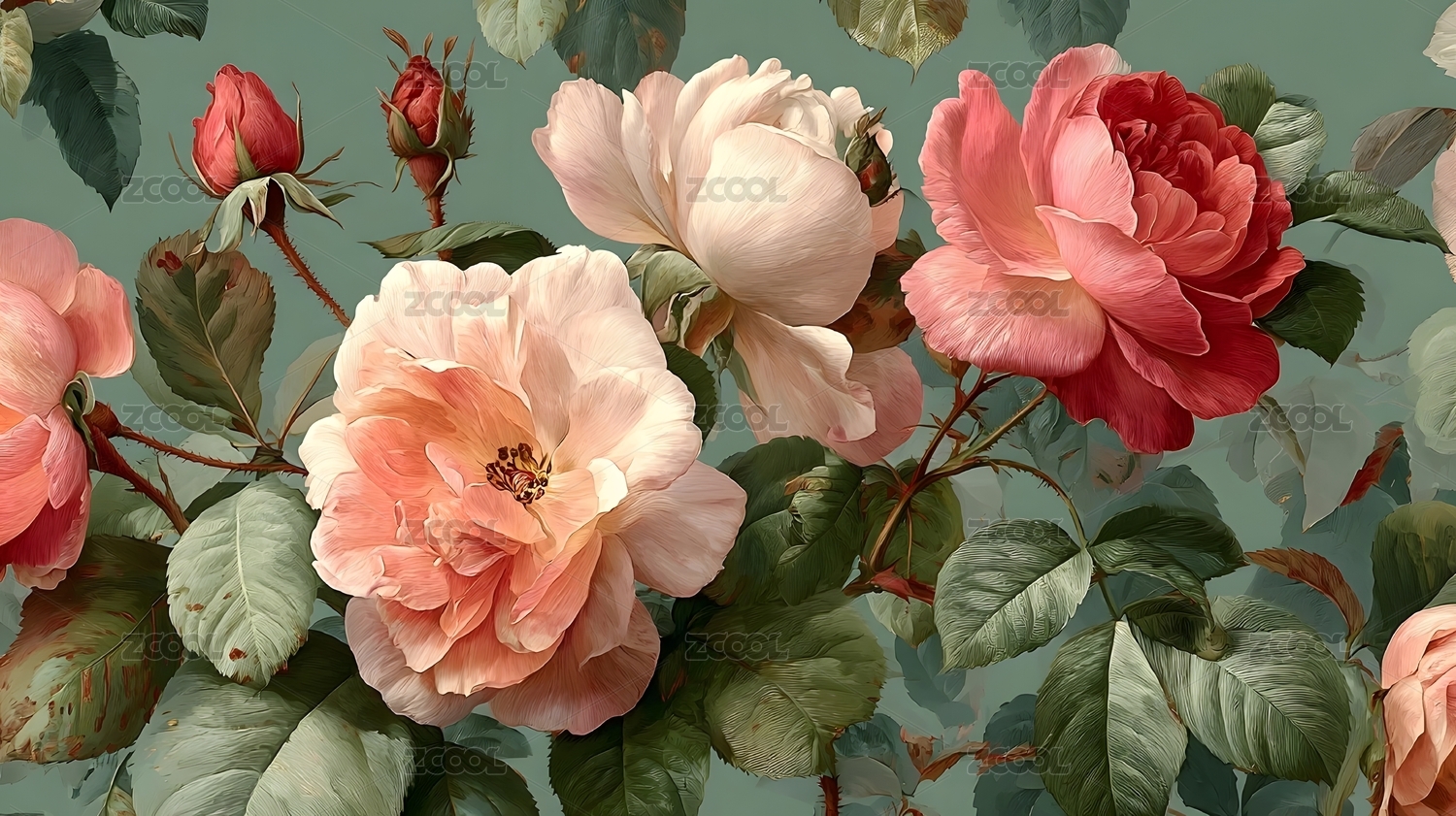 绿色,枝条,玫瑰,粉色,花瓣,叶子,花卉,绿叶,植物,花朵