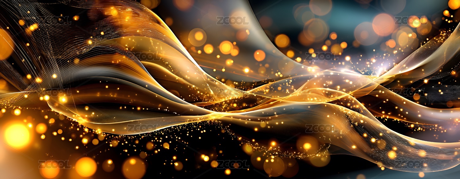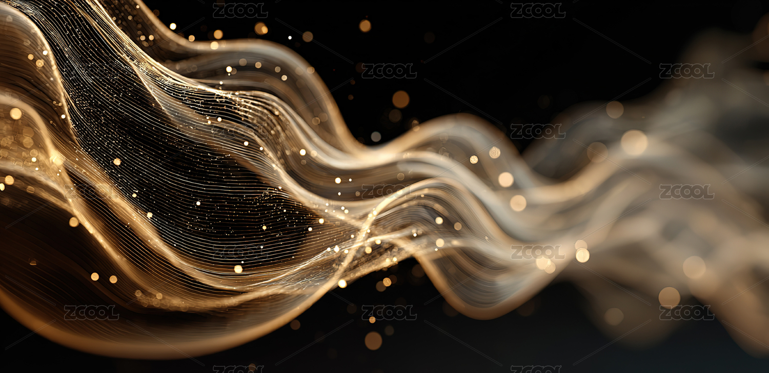 金色,黑色,背景,夜空,三维,空间,波纹线,抽象,弯曲,波浪
