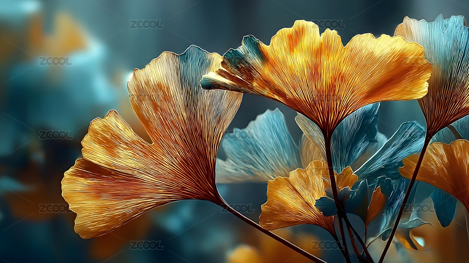 银杏叶多彩艺术特写