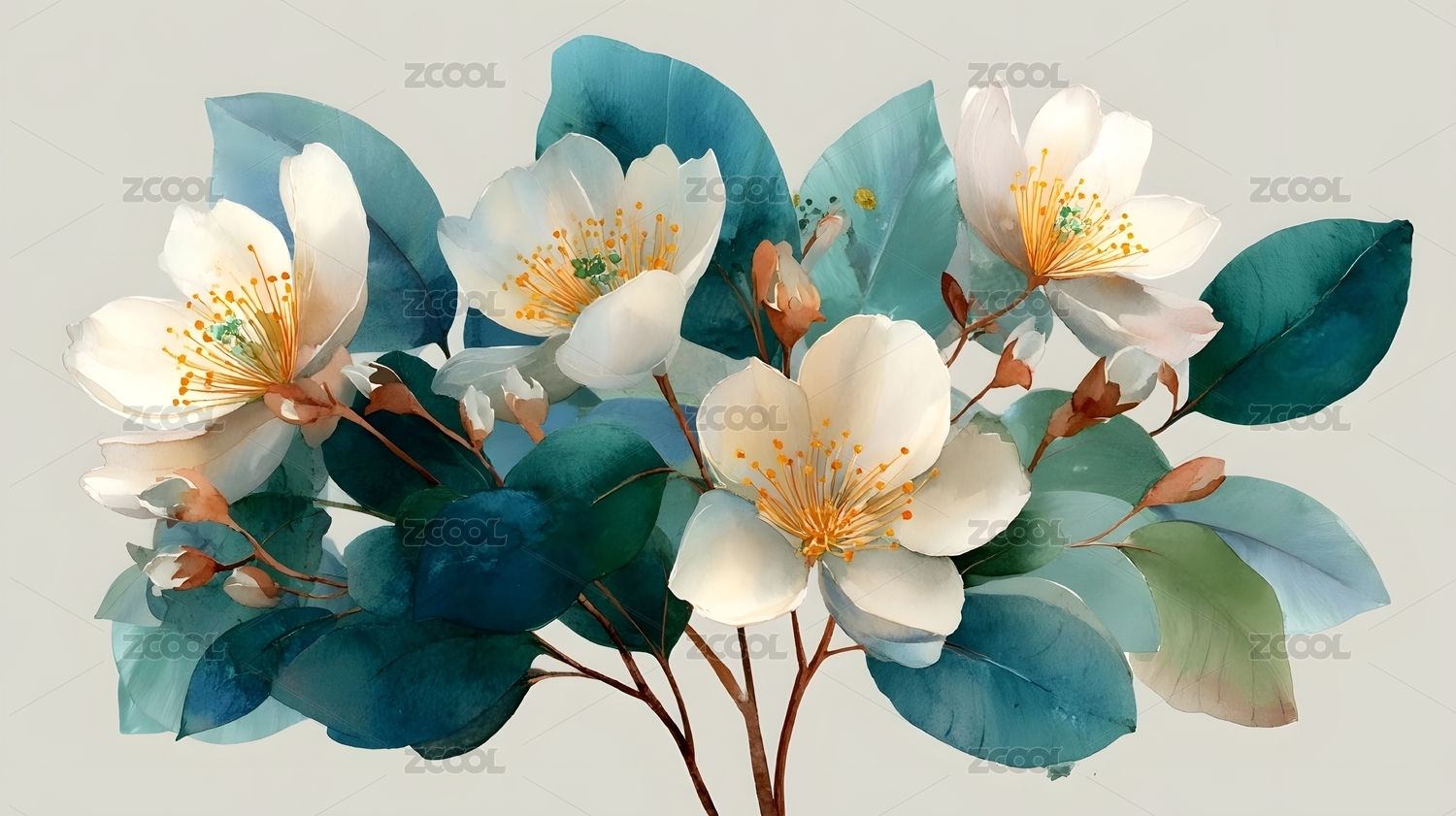 绿色,植物,叶子,白色,背景,花瓣,花蕊,花枝,花丛,花香