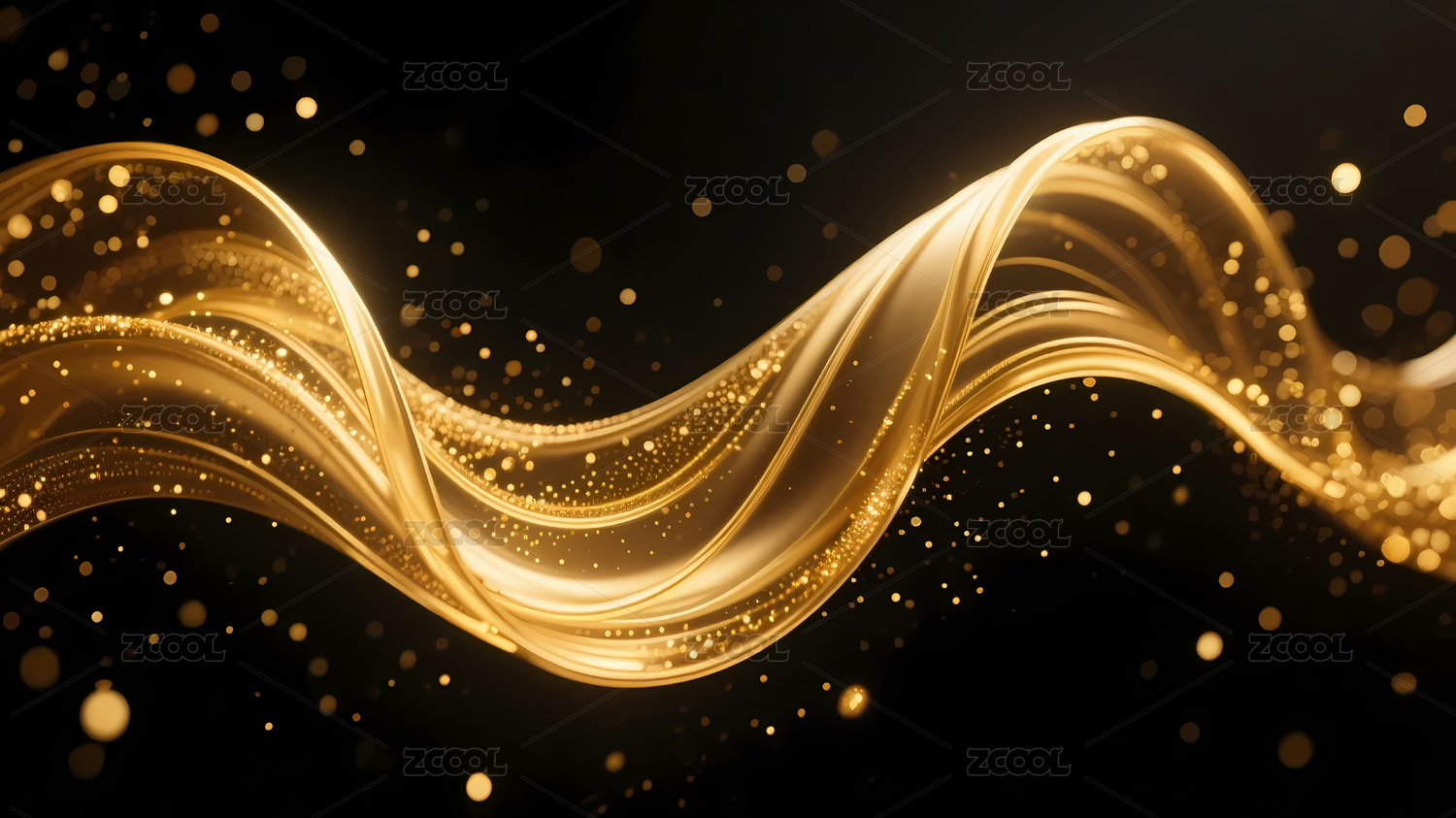 背景,黑色,波浪,线条,光点,流动,动感,金色,深色,奢华