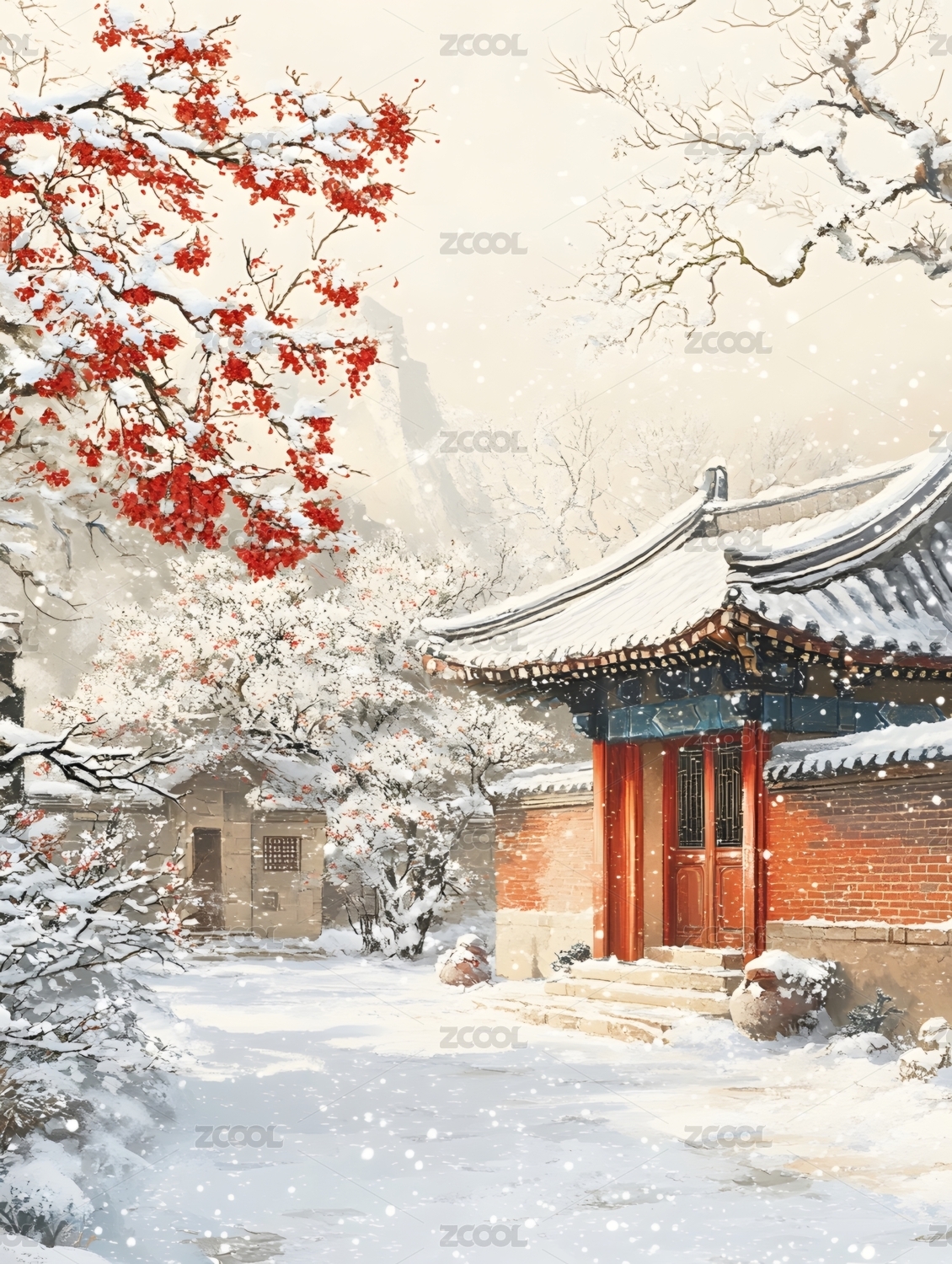 雪景,中式,庭院,园林,冬季,建筑,白雪,传统,文化,景观