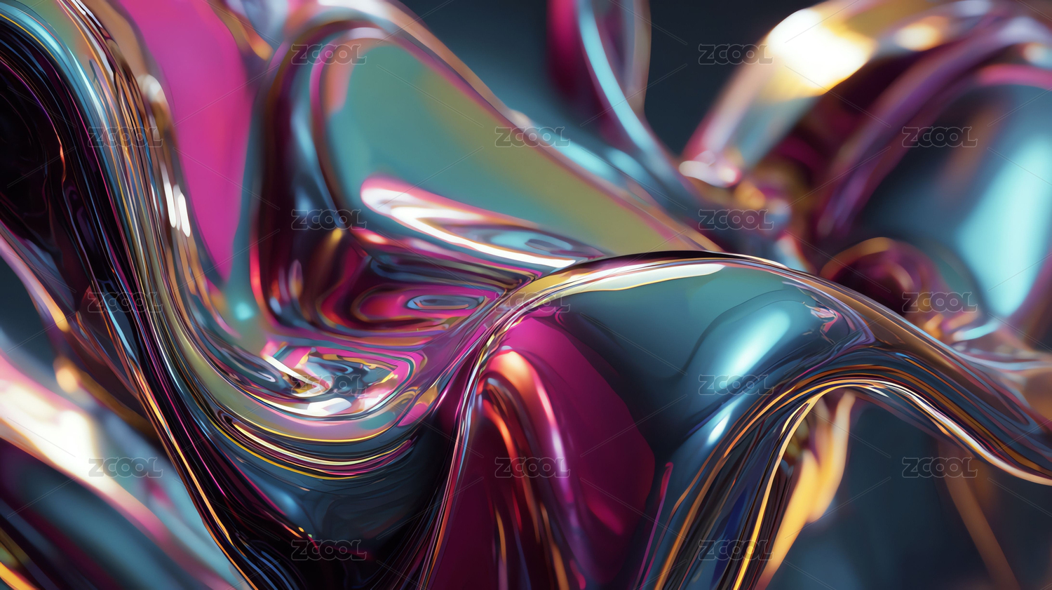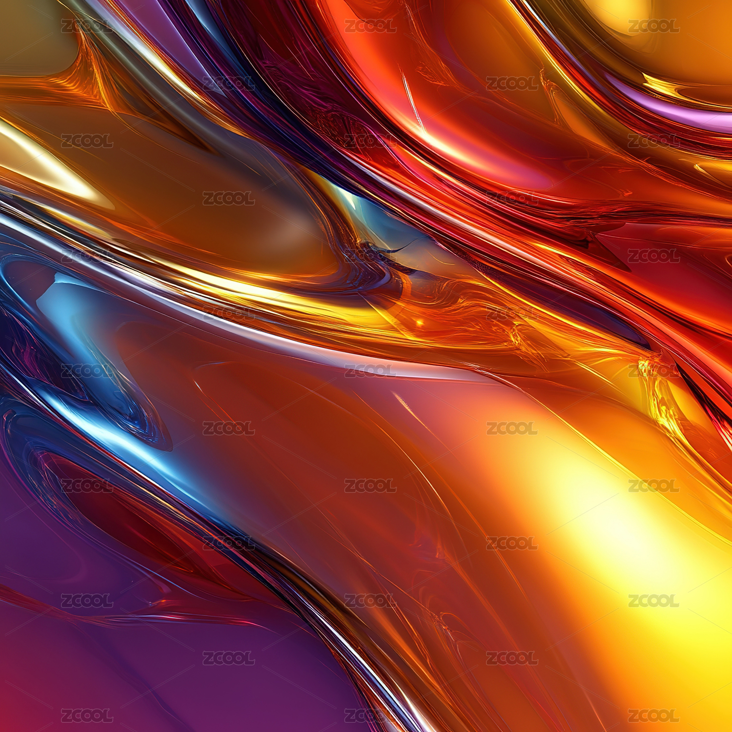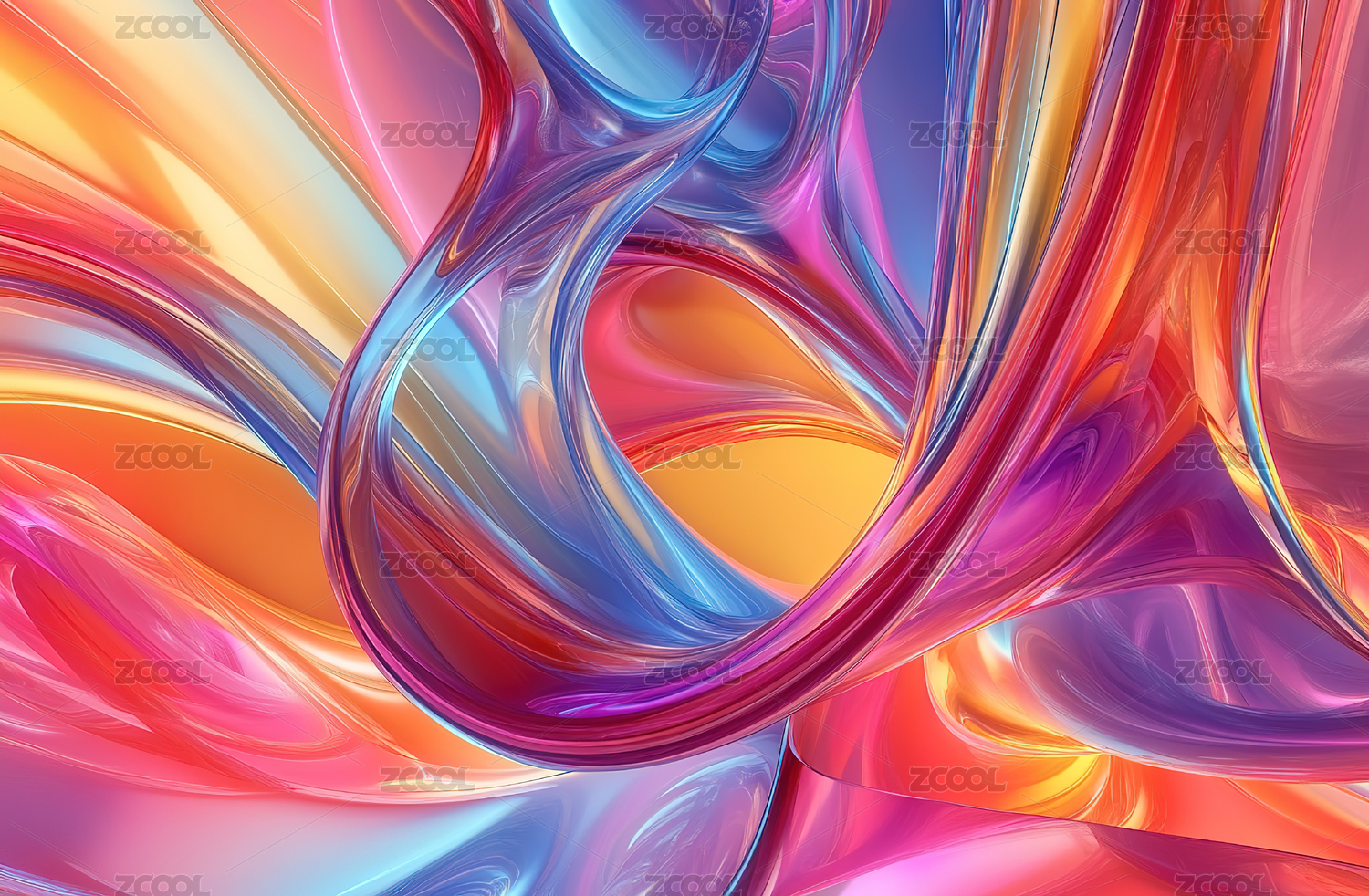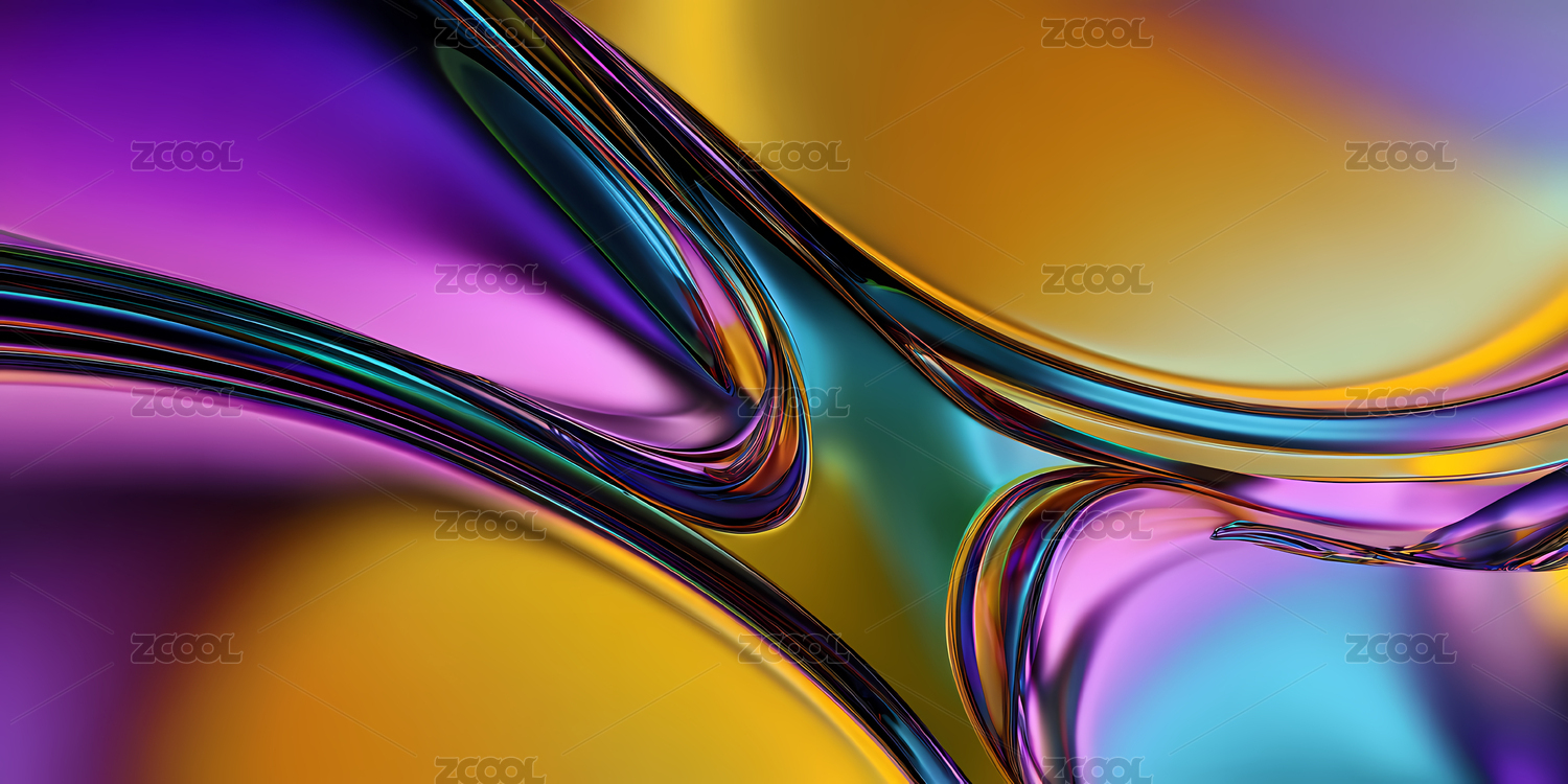 多彩渐变的流动液体,玻璃质感,抽象背景