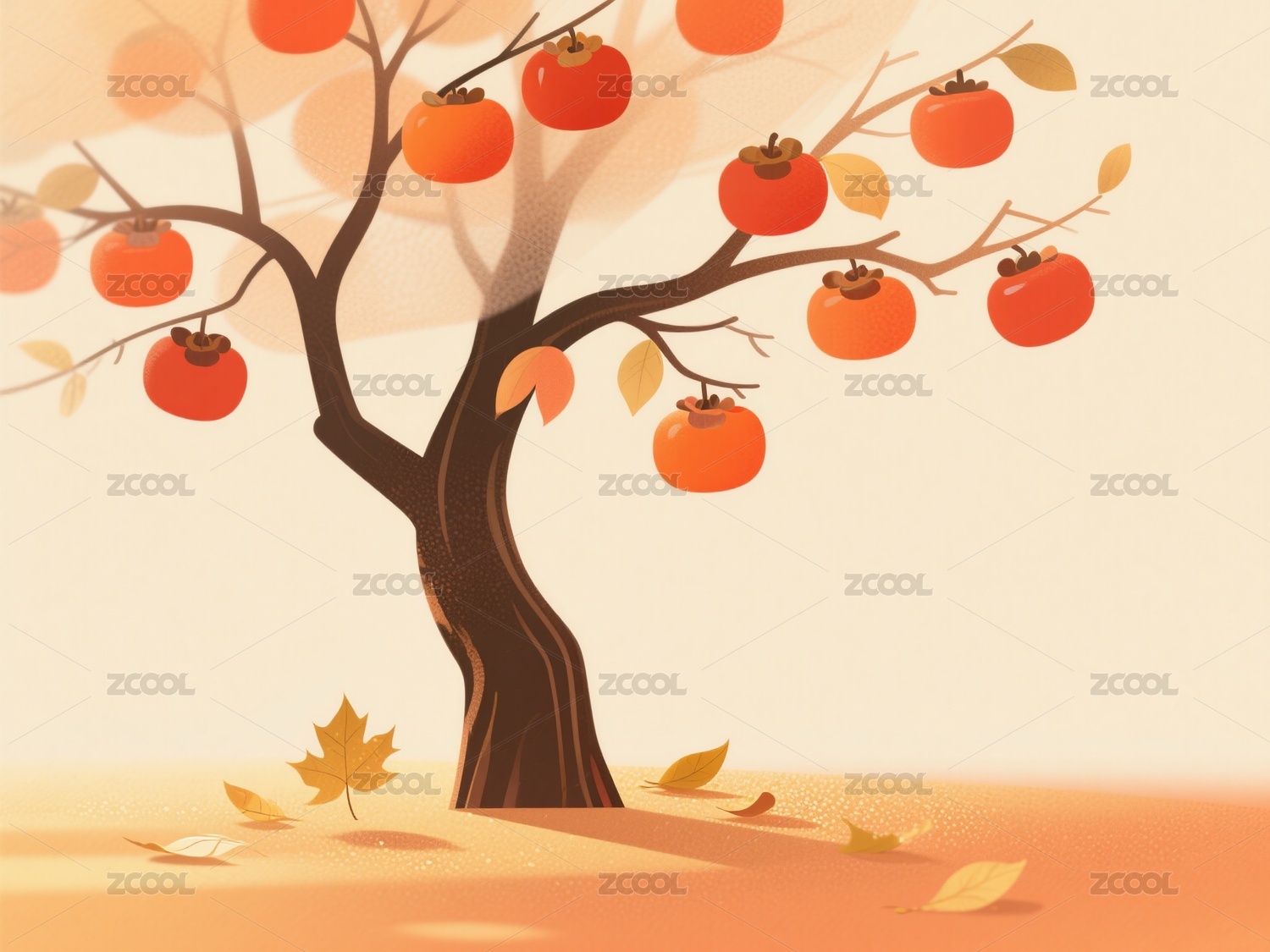 秋天柿子树霜降节气节日清新中国风风景壁纸