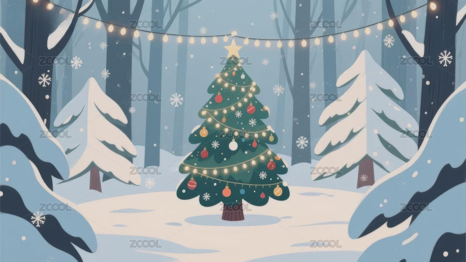 卡通雪地圣诞树
