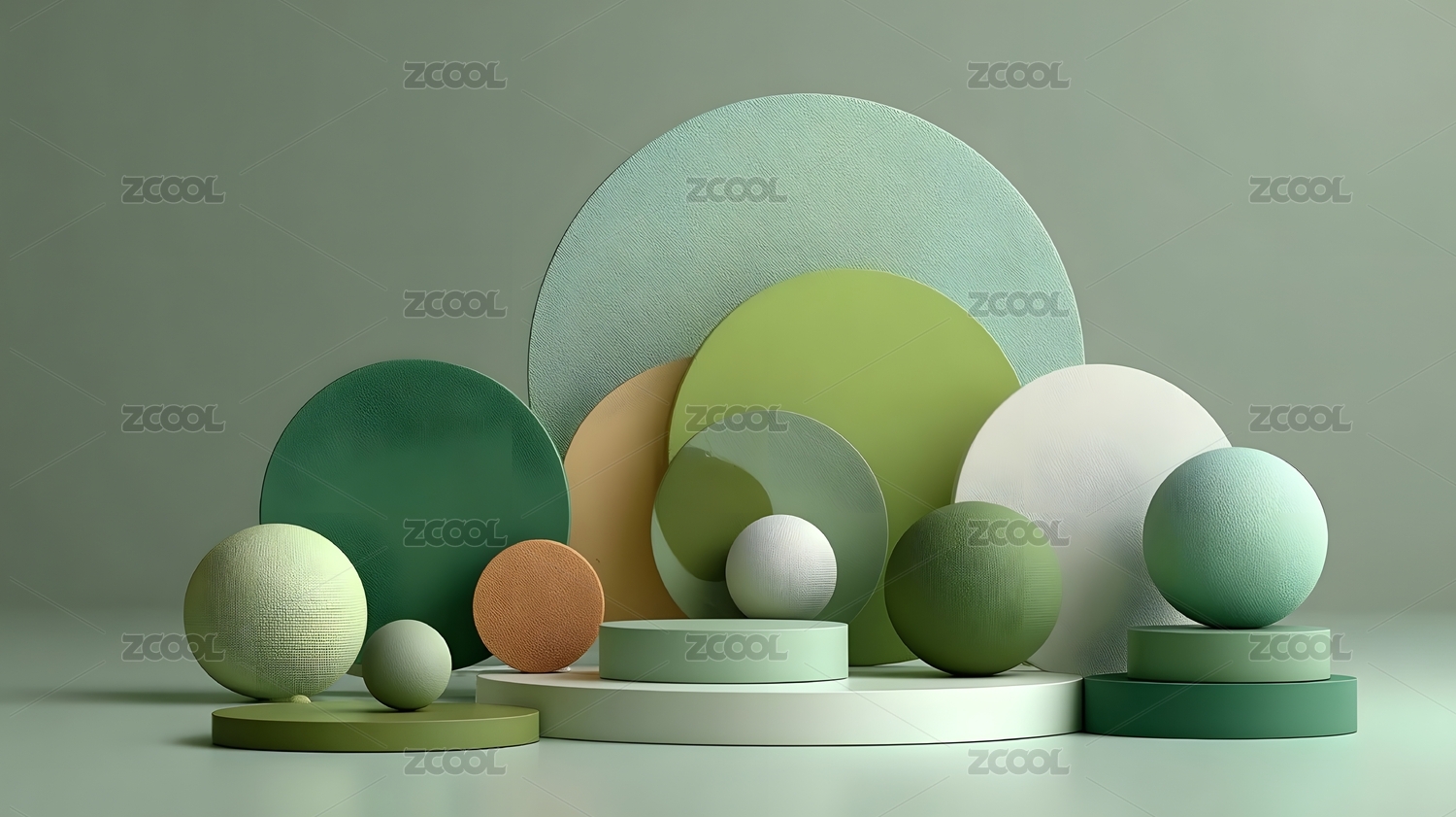 绿色几何形体静物场景