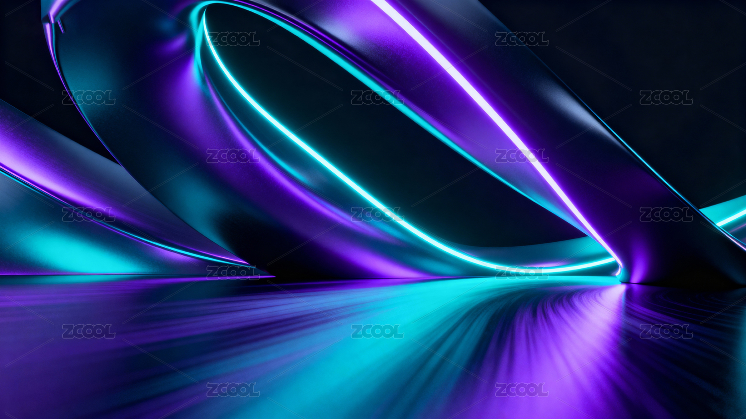 霓虹光带交织的未来感空间