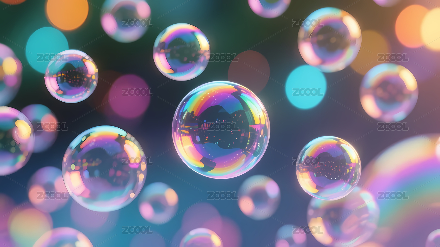 梦幻彩色透明泡泡悬浮场景