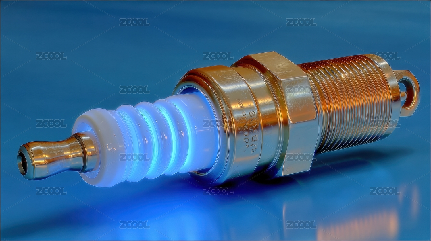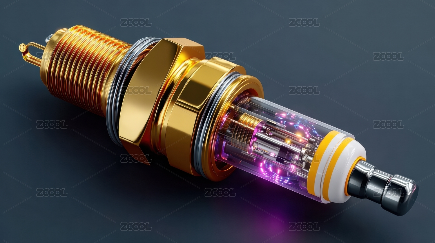发光的金色汽车点火塞