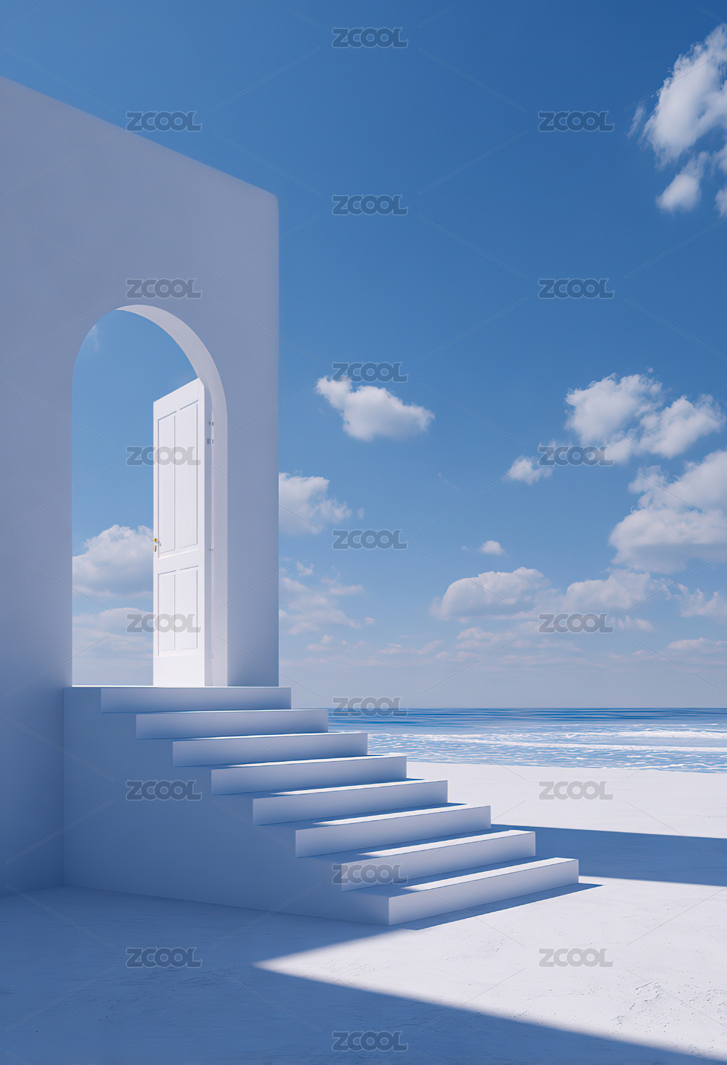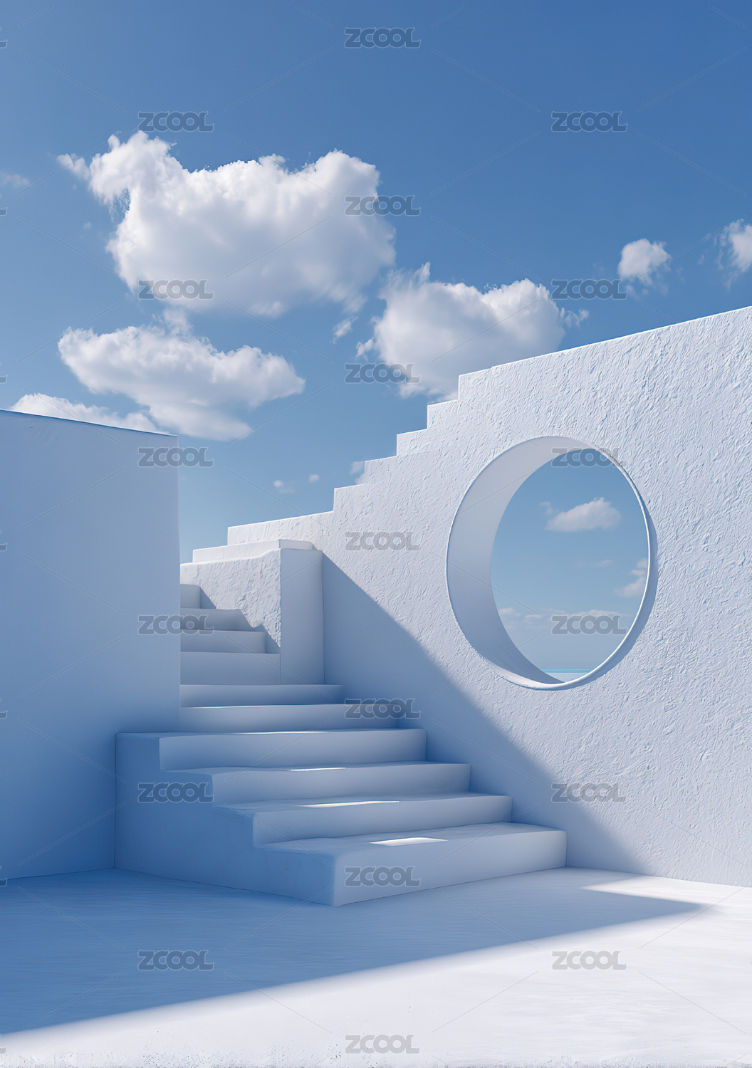 蓝天,雪白,蓝色,几何,建筑,楼梯,石头,简约,天空,白色