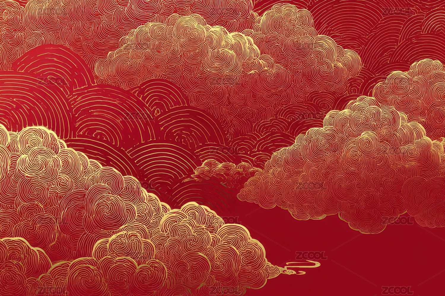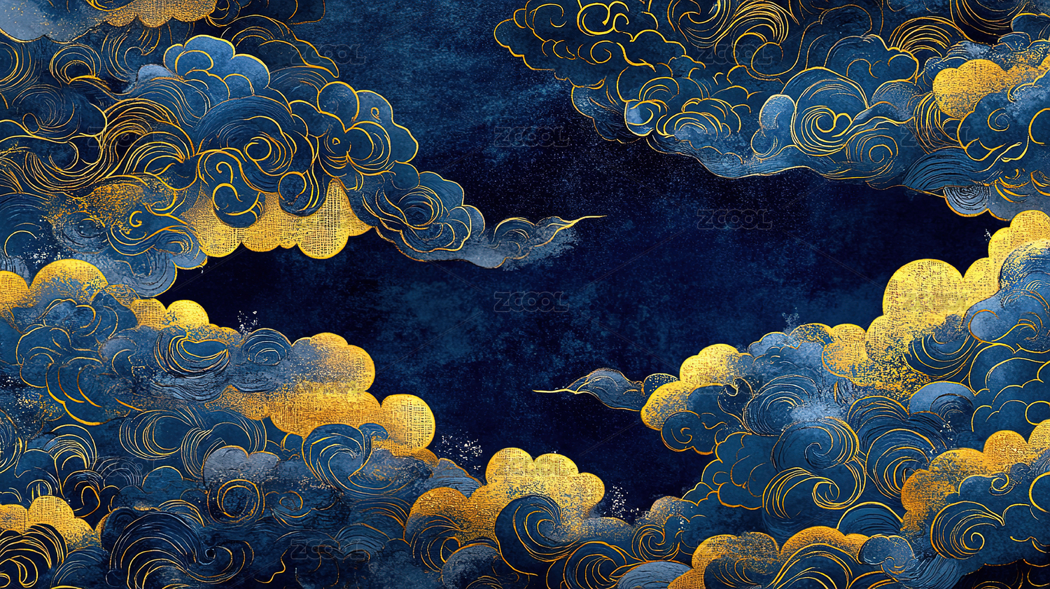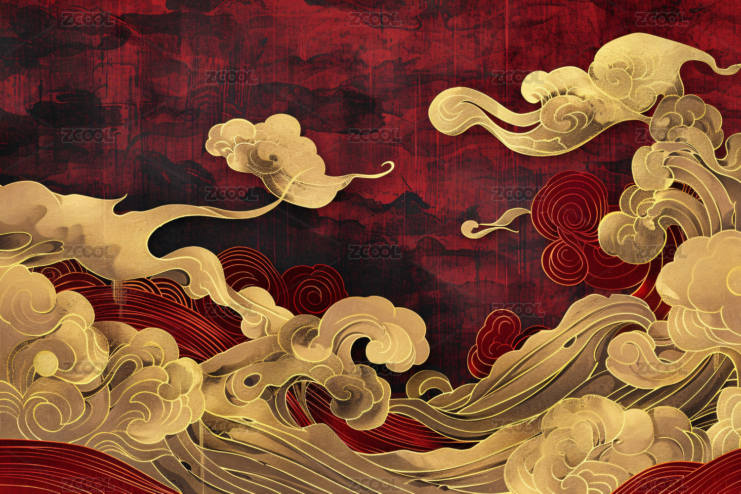 飘带,山水,羽毛,插画,中式,国风,图案,元素,背景,装饰