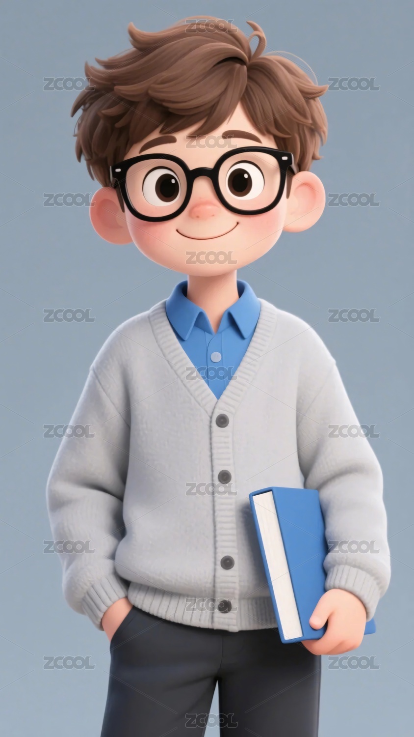 小男孩,眼镜,毛衣,卡通,插画,人物,蓝色配饰,可爱,形象,童趣