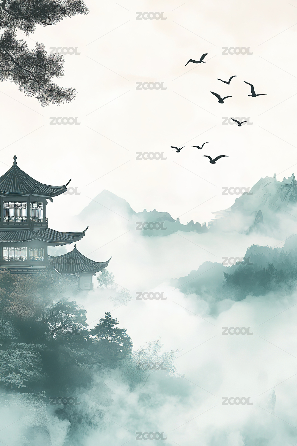 艺术,山水,自然,文化,传统,风景,绘画,建筑,景色,宁静