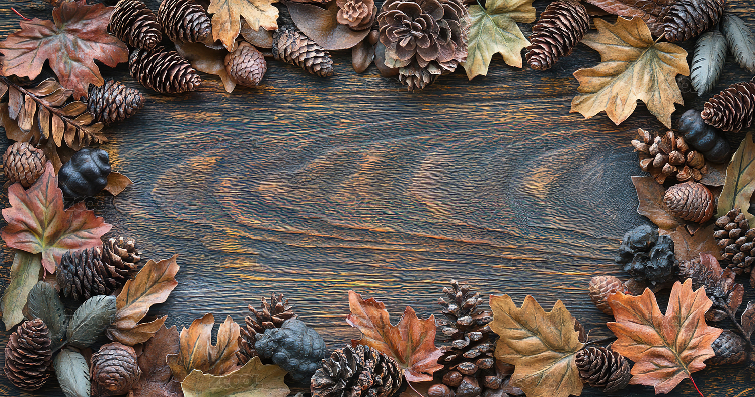 背景,主体,点缀,黄色,温暖,棕色,松果,氛围,木板,秋叶