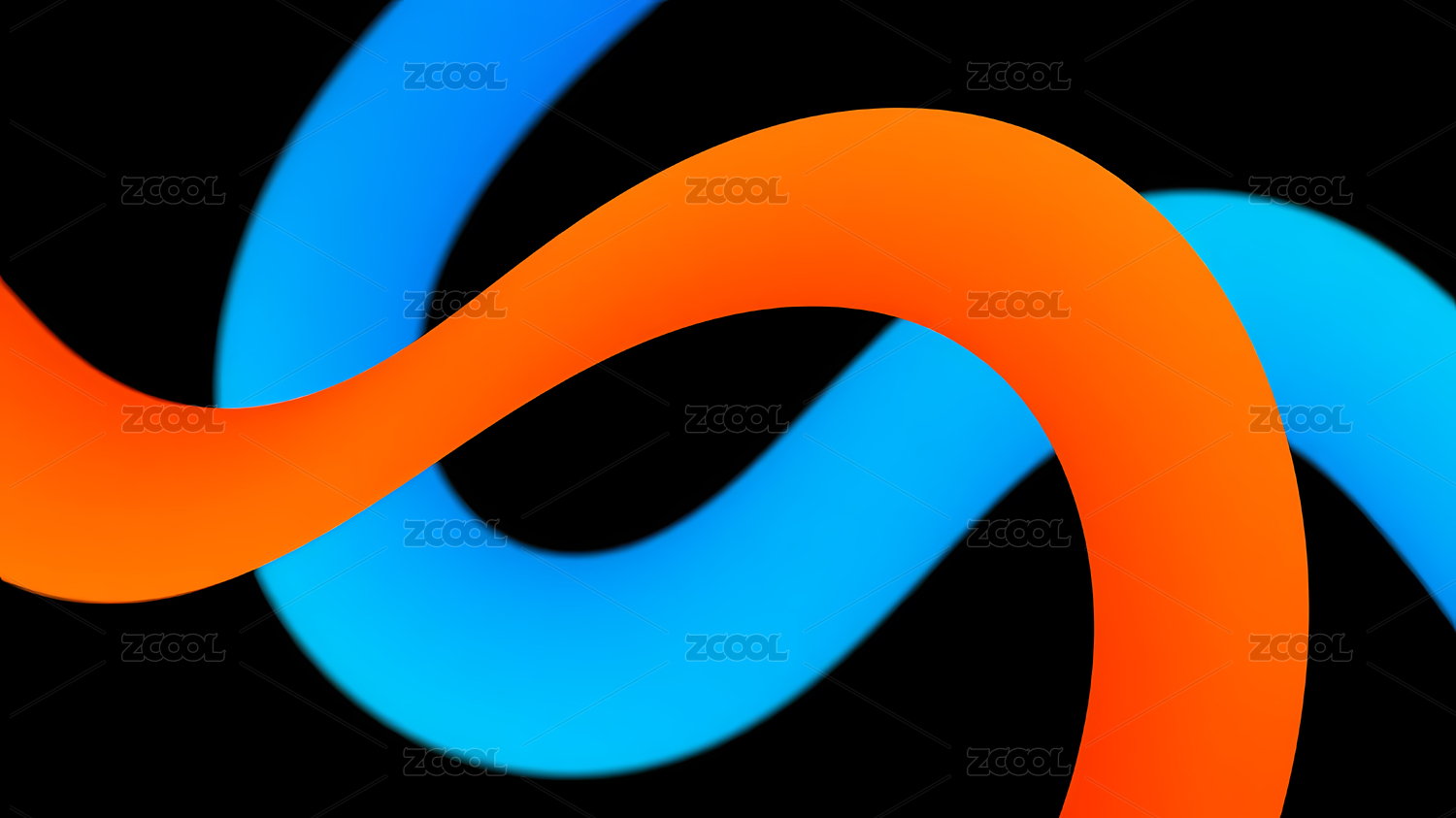橙蓝弯曲线条与黑色背景