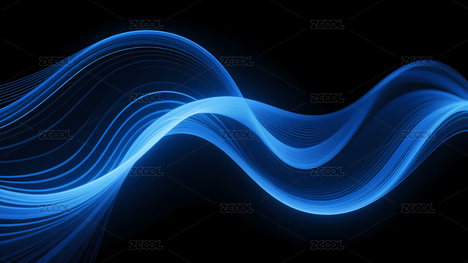 蓝色发光波浪深蓝背景