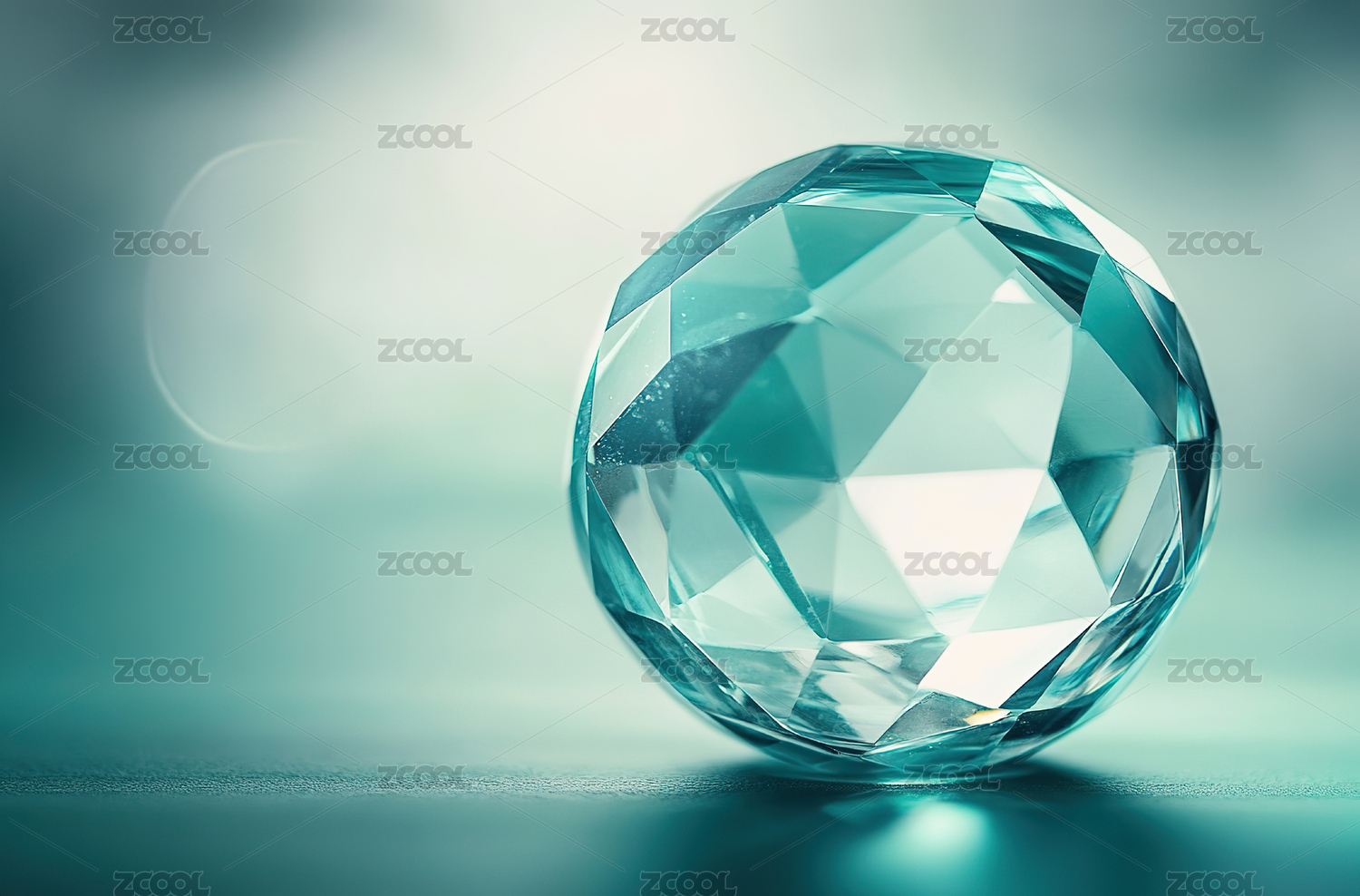 蓝色,背景,主体,光斑,模糊,绿色,晶体,透明,多面,淡蓝
