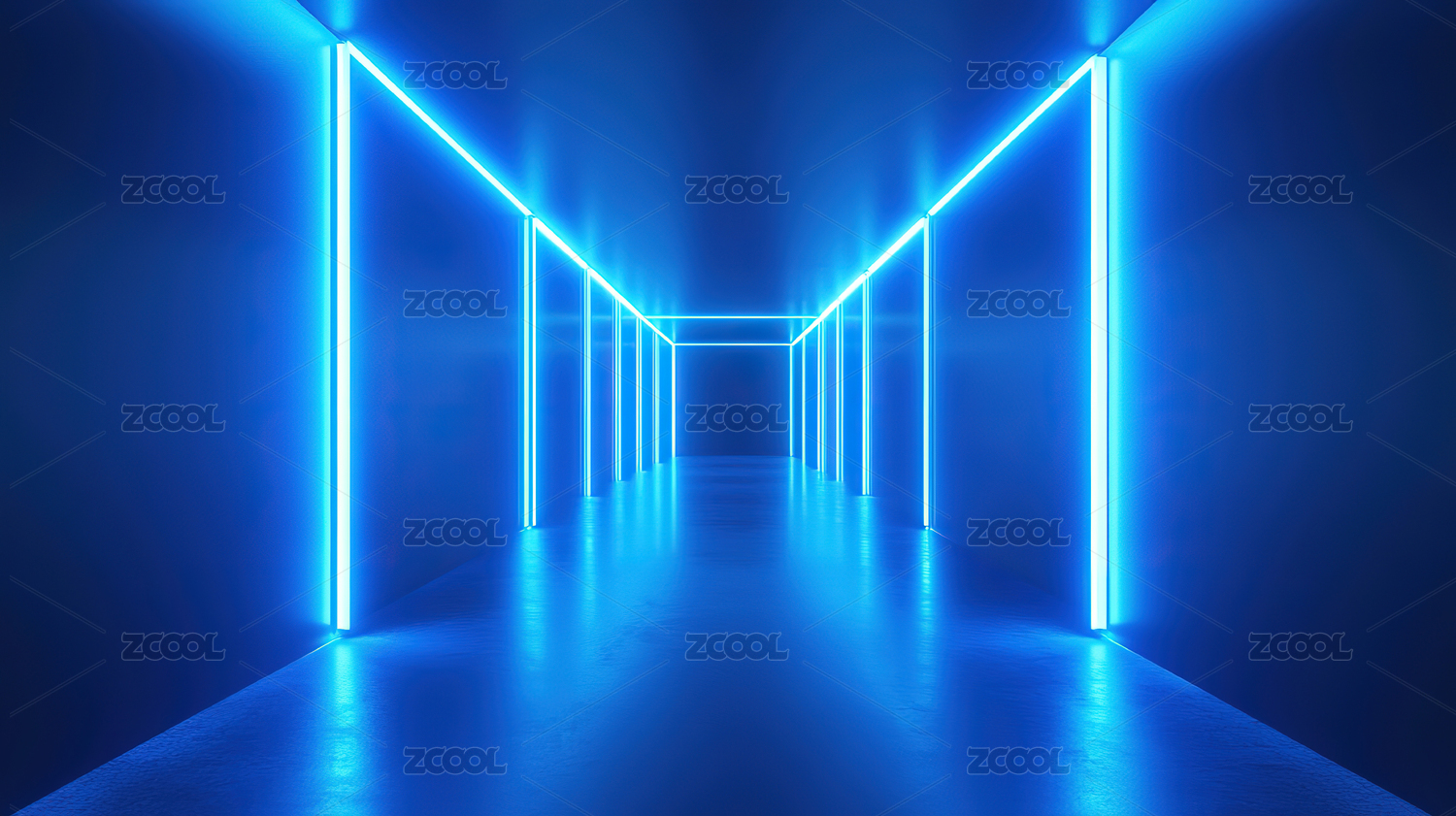 蓝色霓虹光框空间