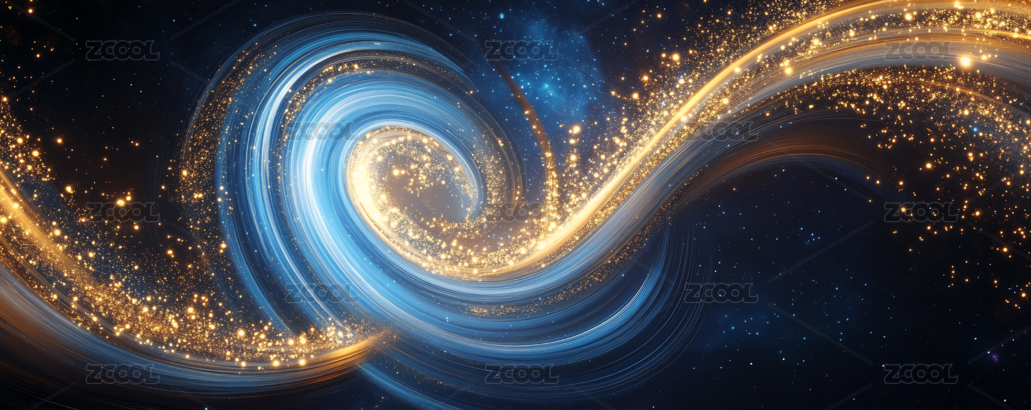 曲线,星光,商务,科技,风格,背景,插画,蓝色,金色,扭曲