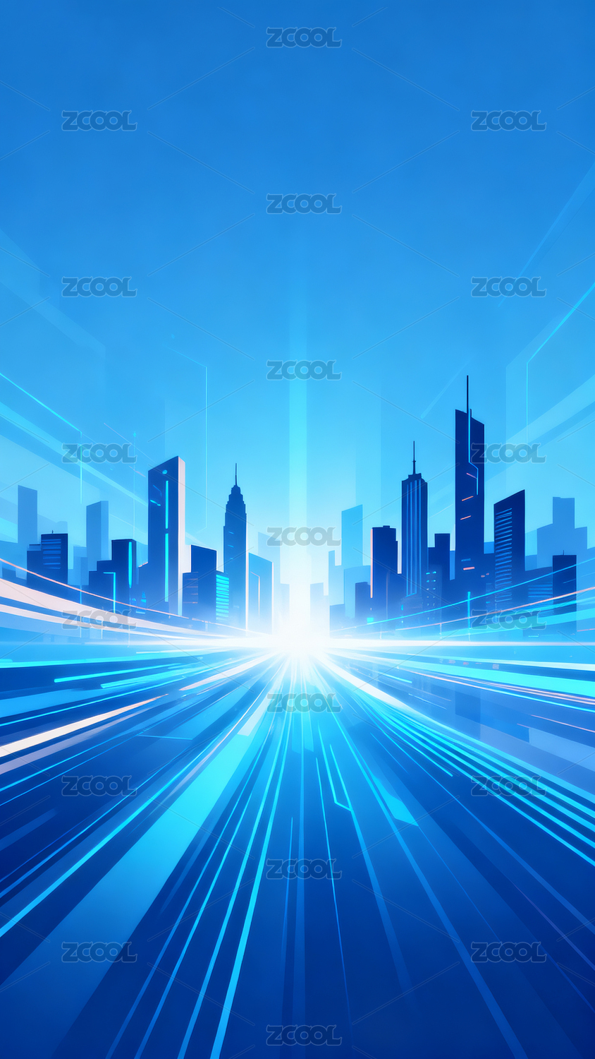 蓝色商务科技未来感光线光效城市建筑主视觉