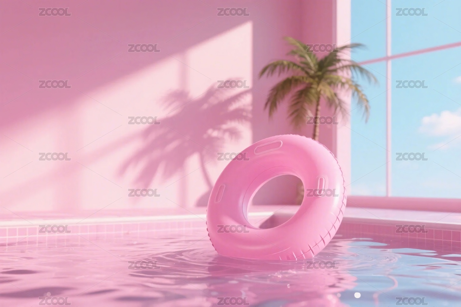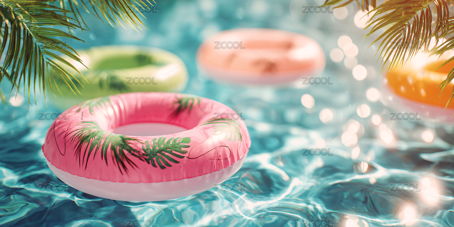 游泳圈,海滩,棕榈树,泳池,热带植物,蓝天,海水,度假,休闲,夏日