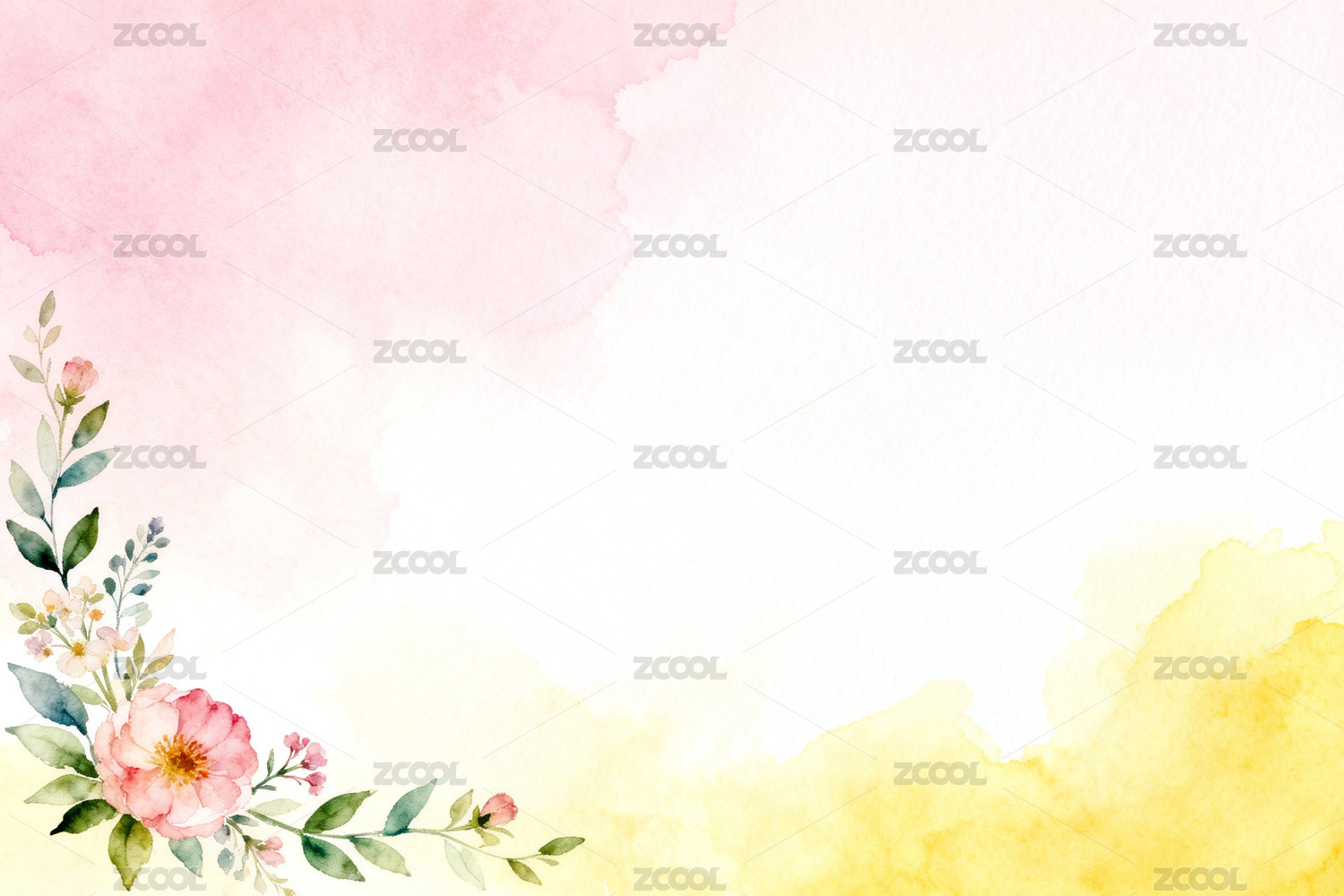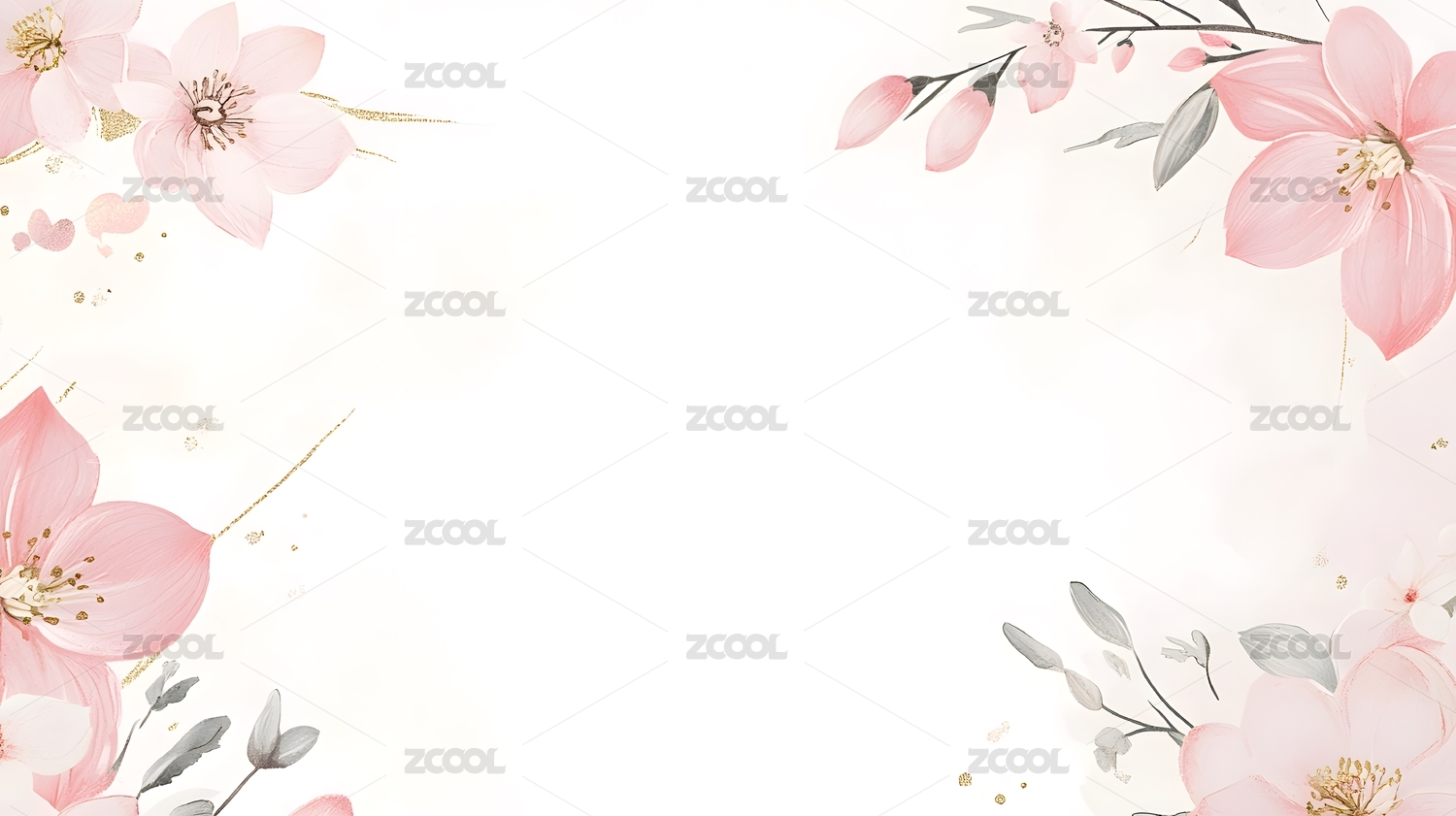 粉色花卉水彩边框背景