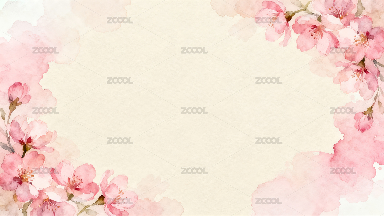 水彩樱花花朵边框背景图
