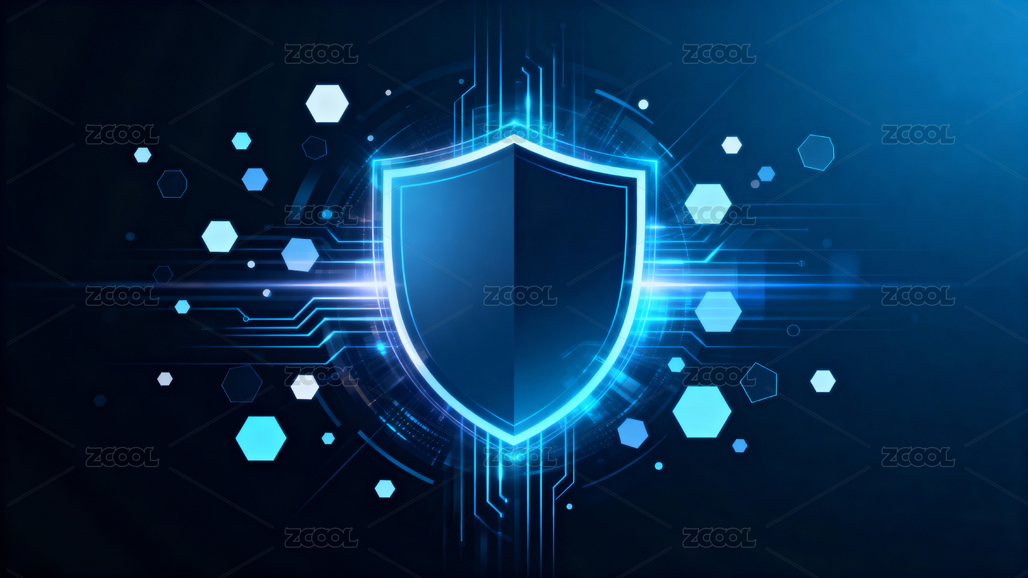 蓝色科技盾牌安全防护图案