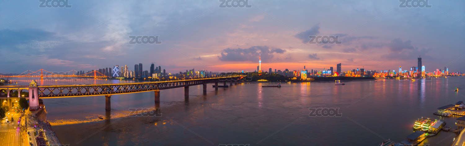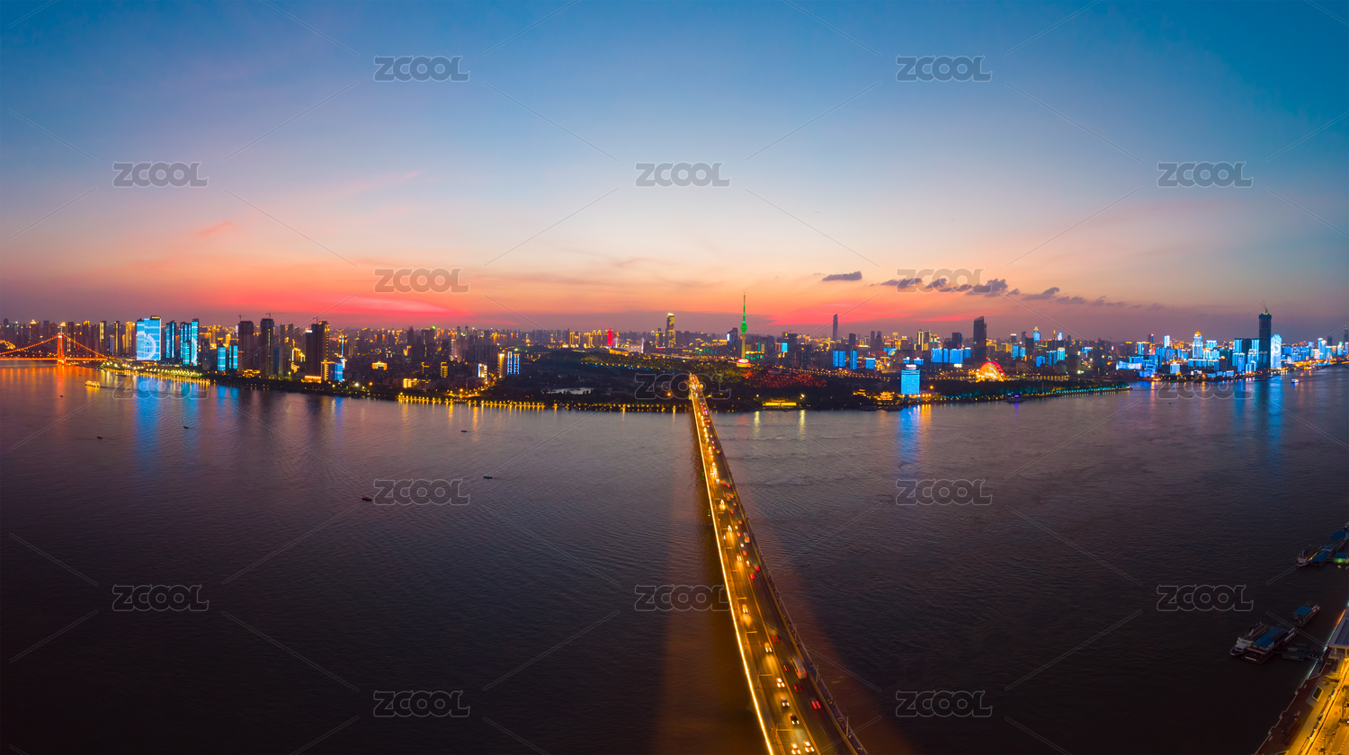 湖北武汉市江滩武汉长江大桥城市天际线夜景