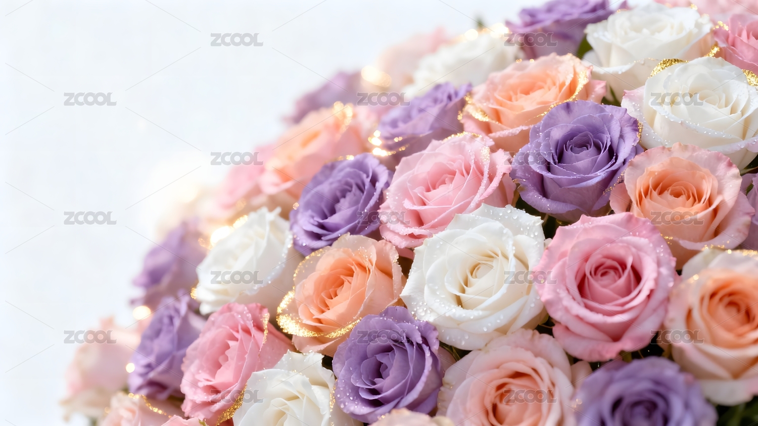 多彩玫瑰花束特写