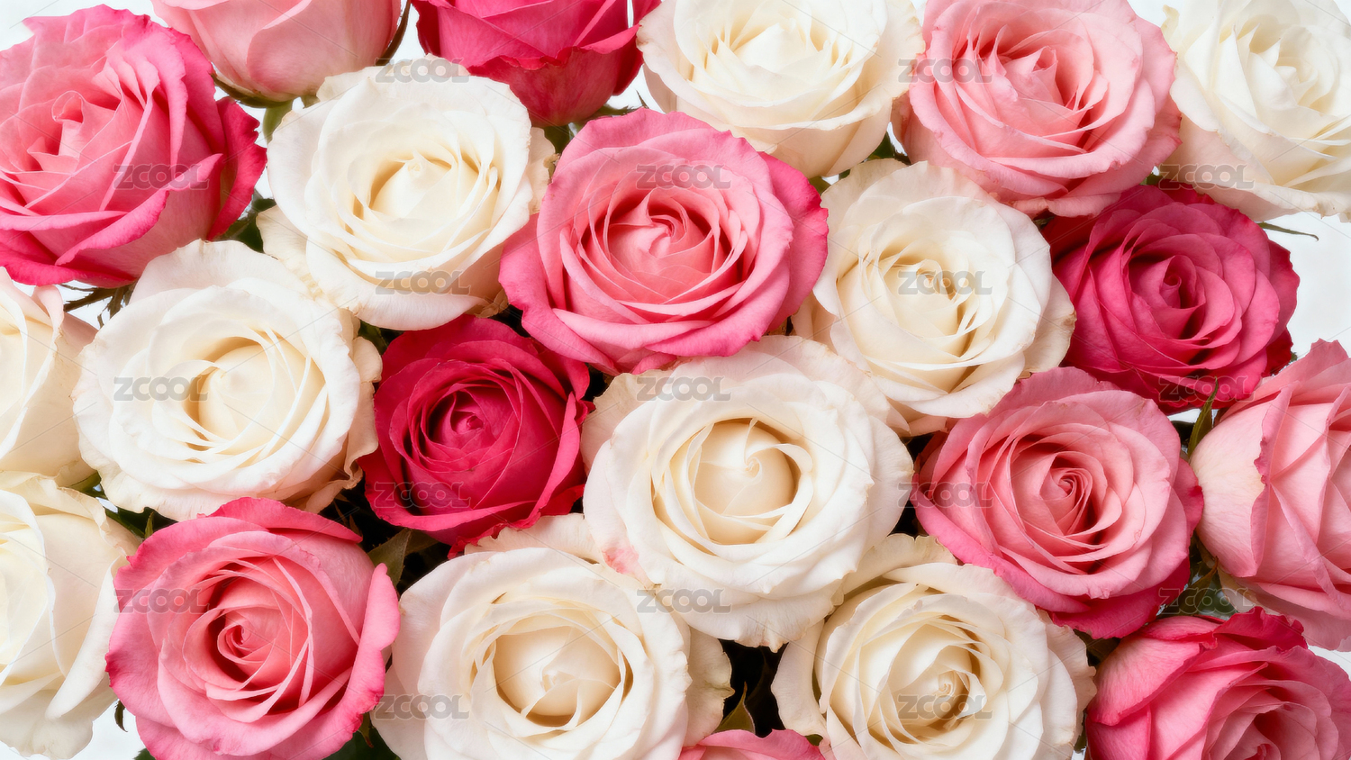 粉色与白色玫瑰花束特写