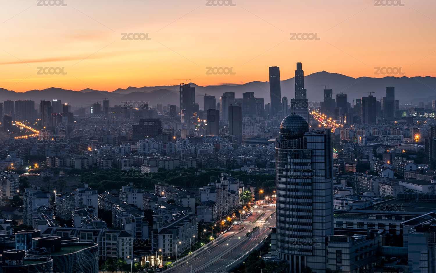 浙江省杭州拱墅区朝晖地区城市夕阳风光