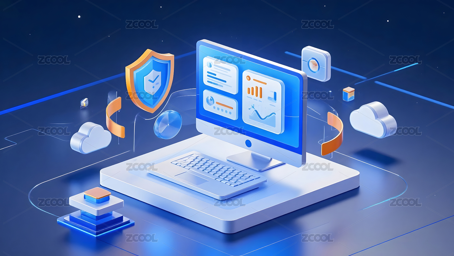 科技,保护,蓝色,安全,圆形,简约,白色,网络,系统,设计