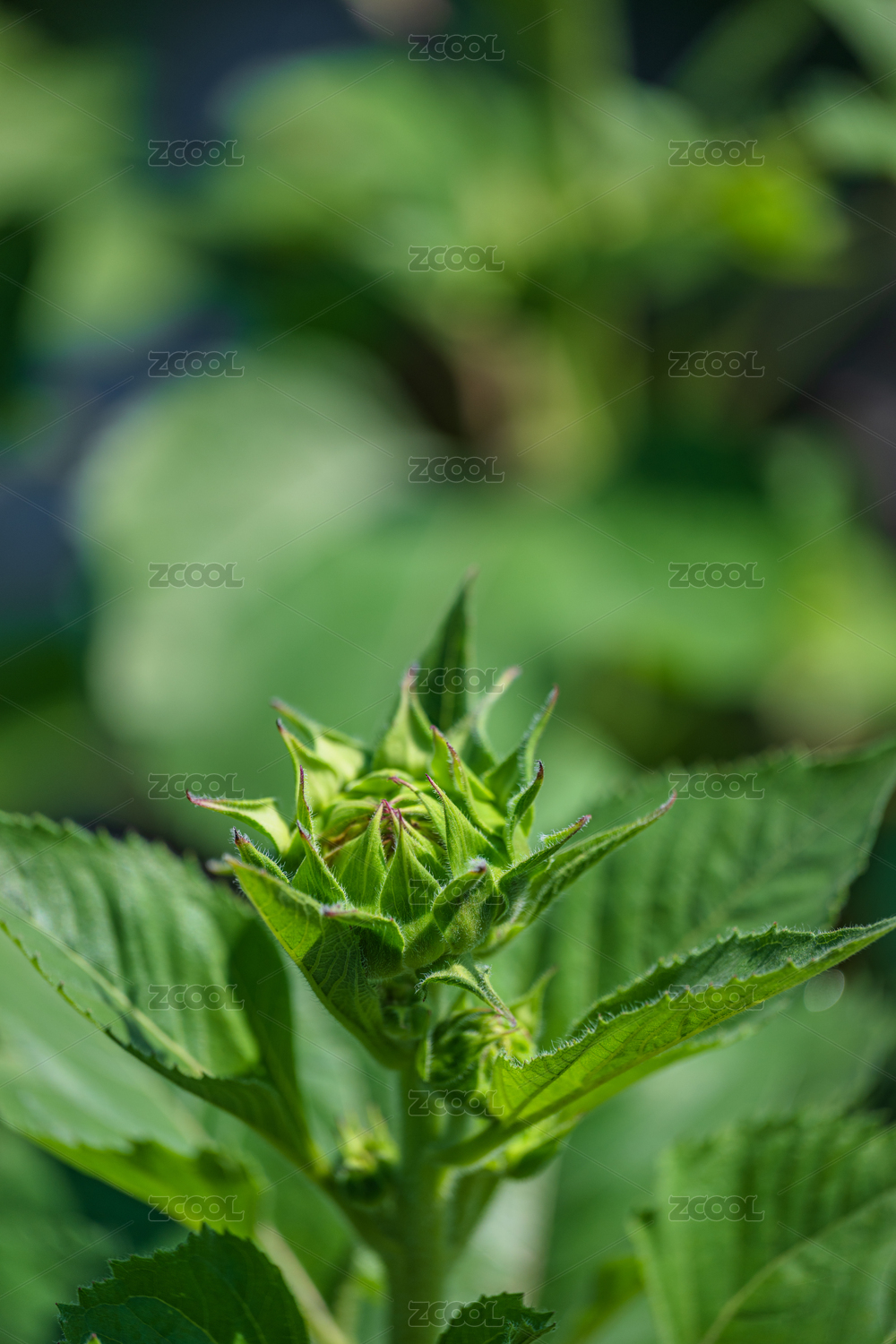 向日葵花蕾在绿意盎然的自然环境中绽放