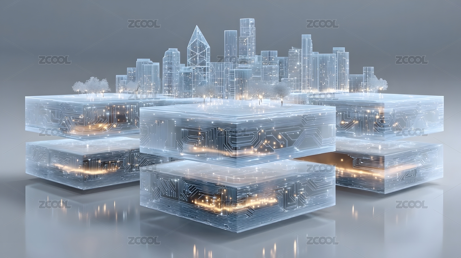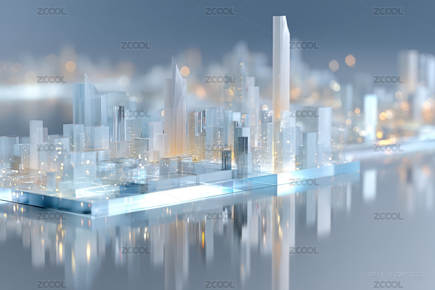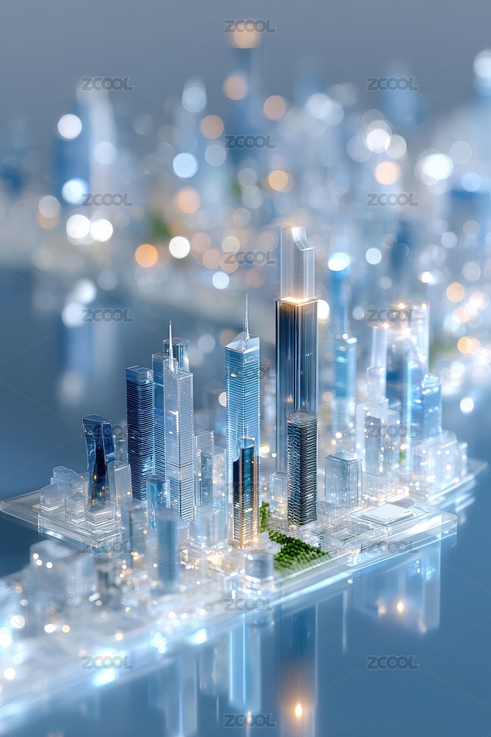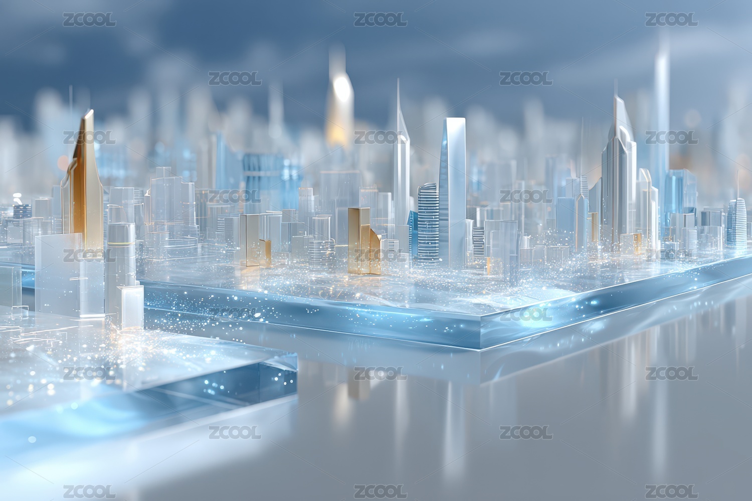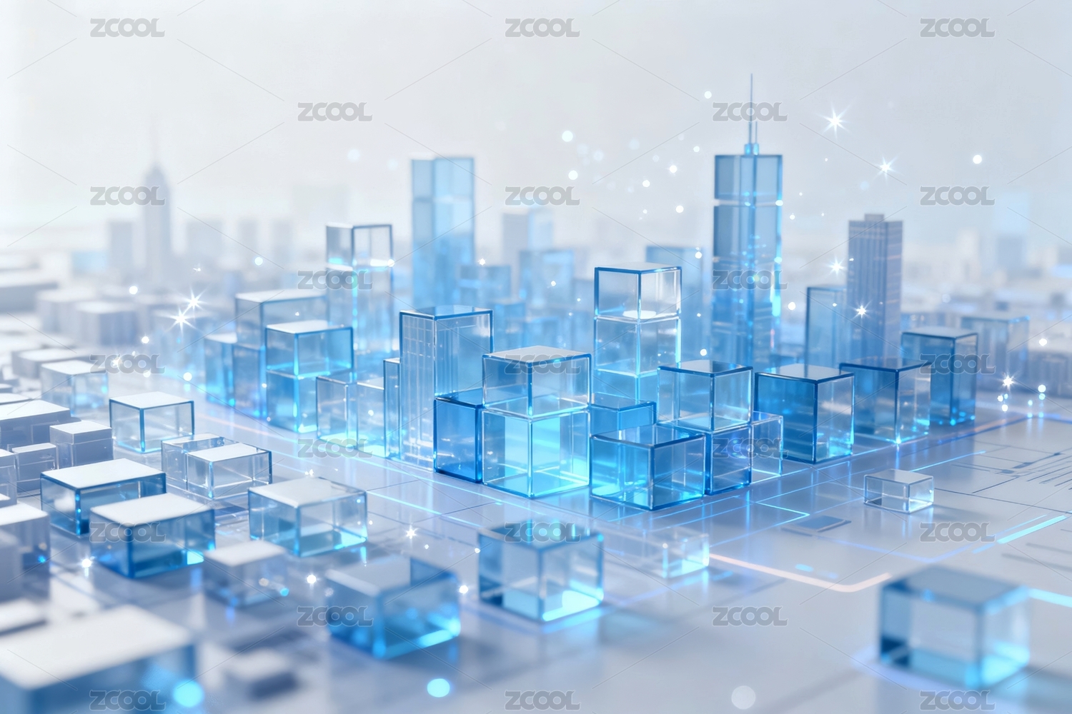 商务科技蓝色水晶质感城市建筑模型