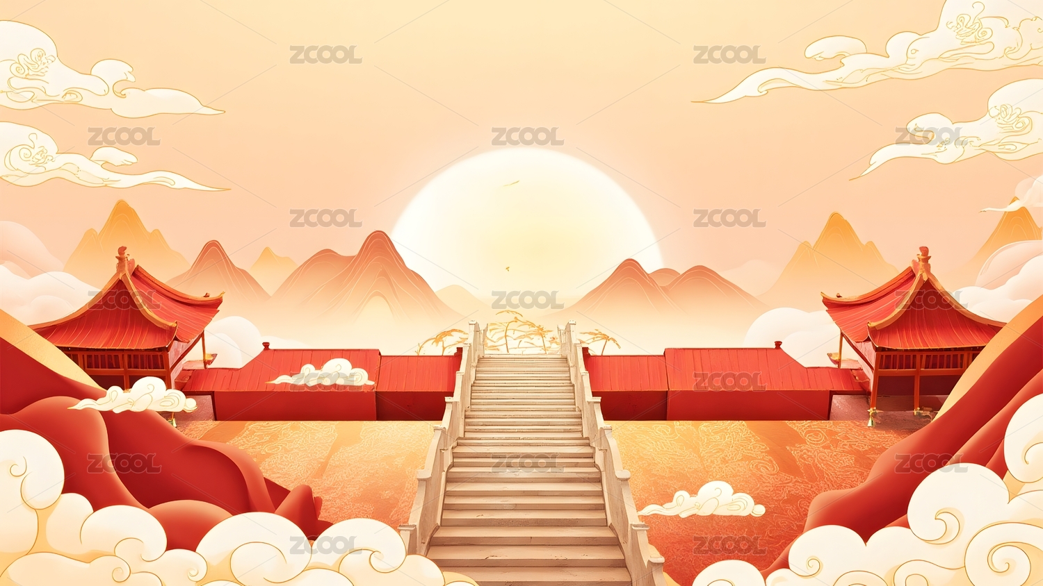 梦幻,山峦,光影,云雾,红叶,古庙,秋色,祥和