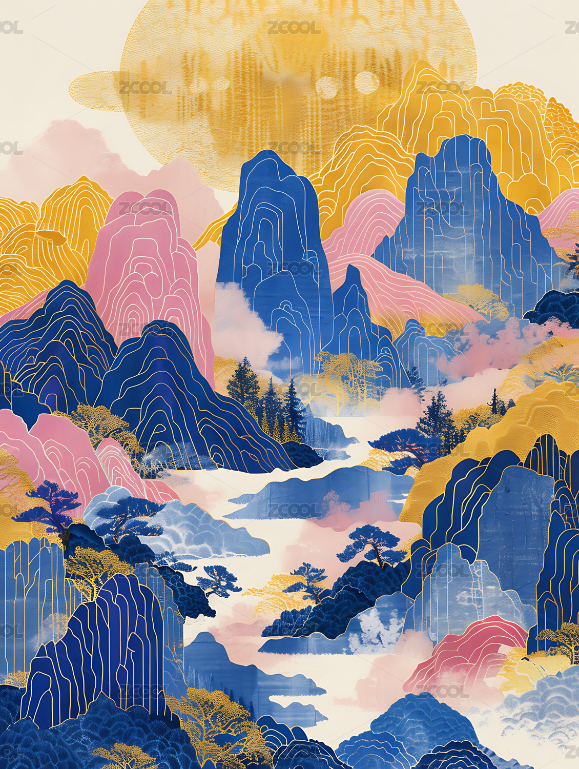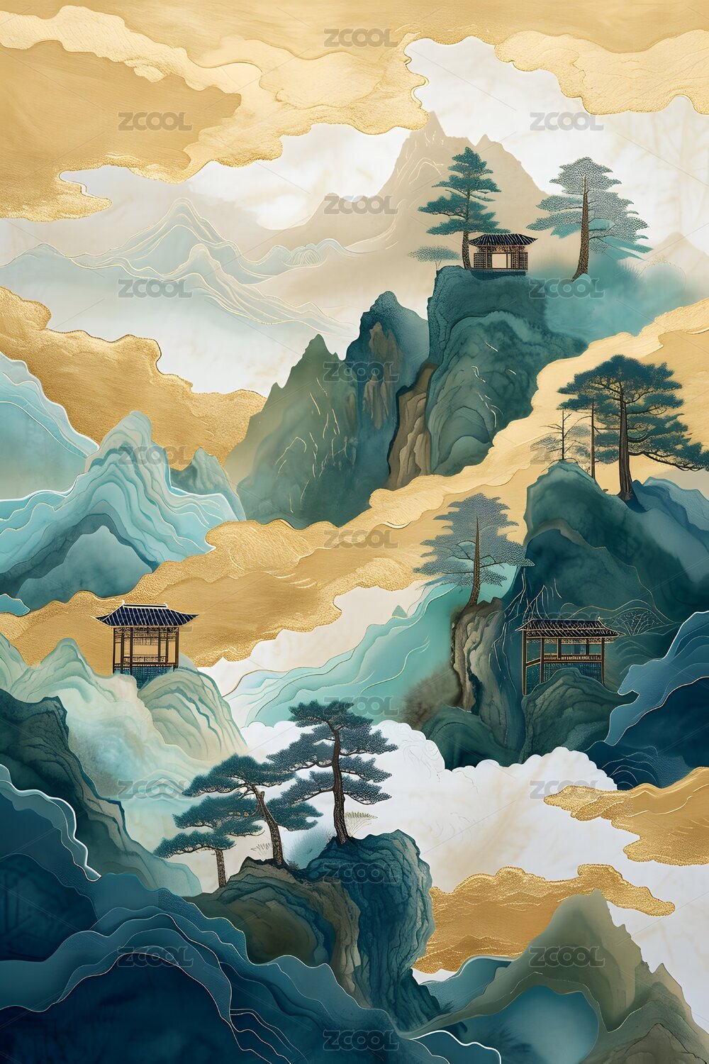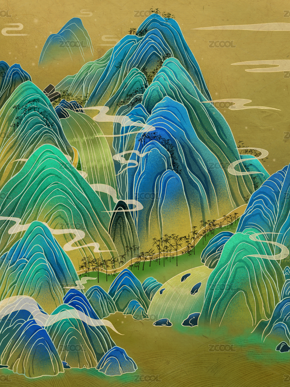 传统, 艺术, 文化, 东方, 自然, 意境, 绘画, 线条, 风景, 山峰