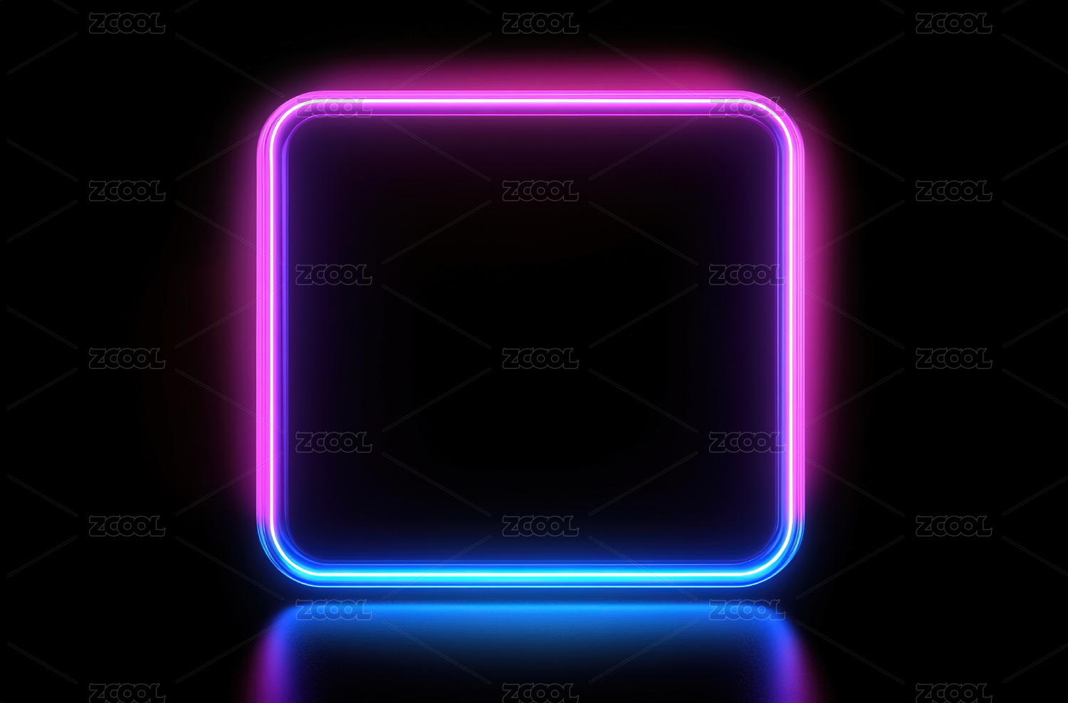 3D蓝紫色霓虹灯空框架黑色抽象背景
