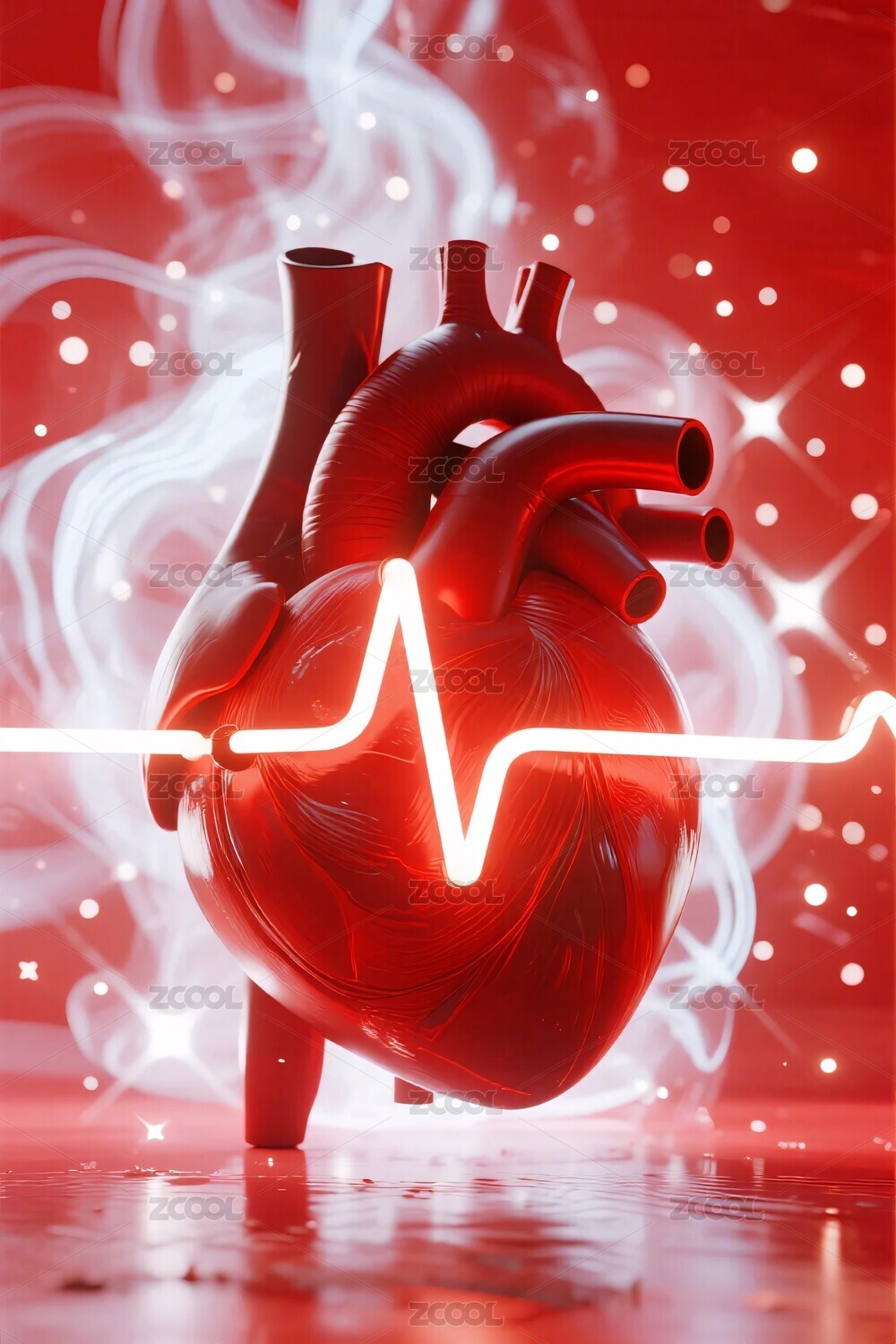 红色心脏心电图特效图
