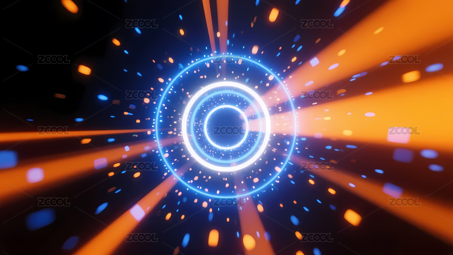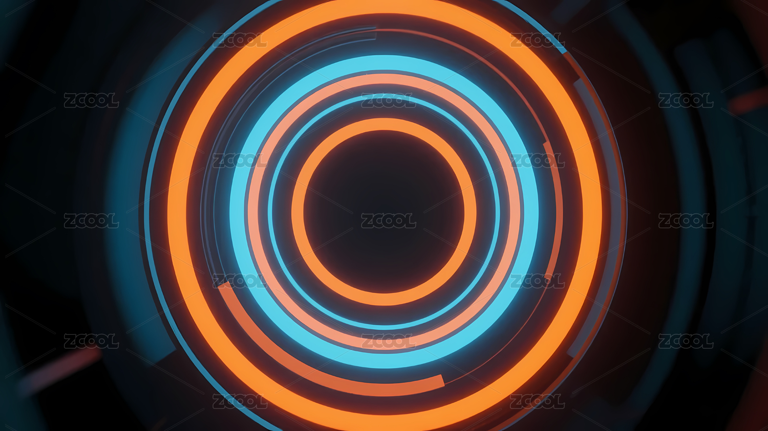 蓝橙光环构成的抽象隧道场景