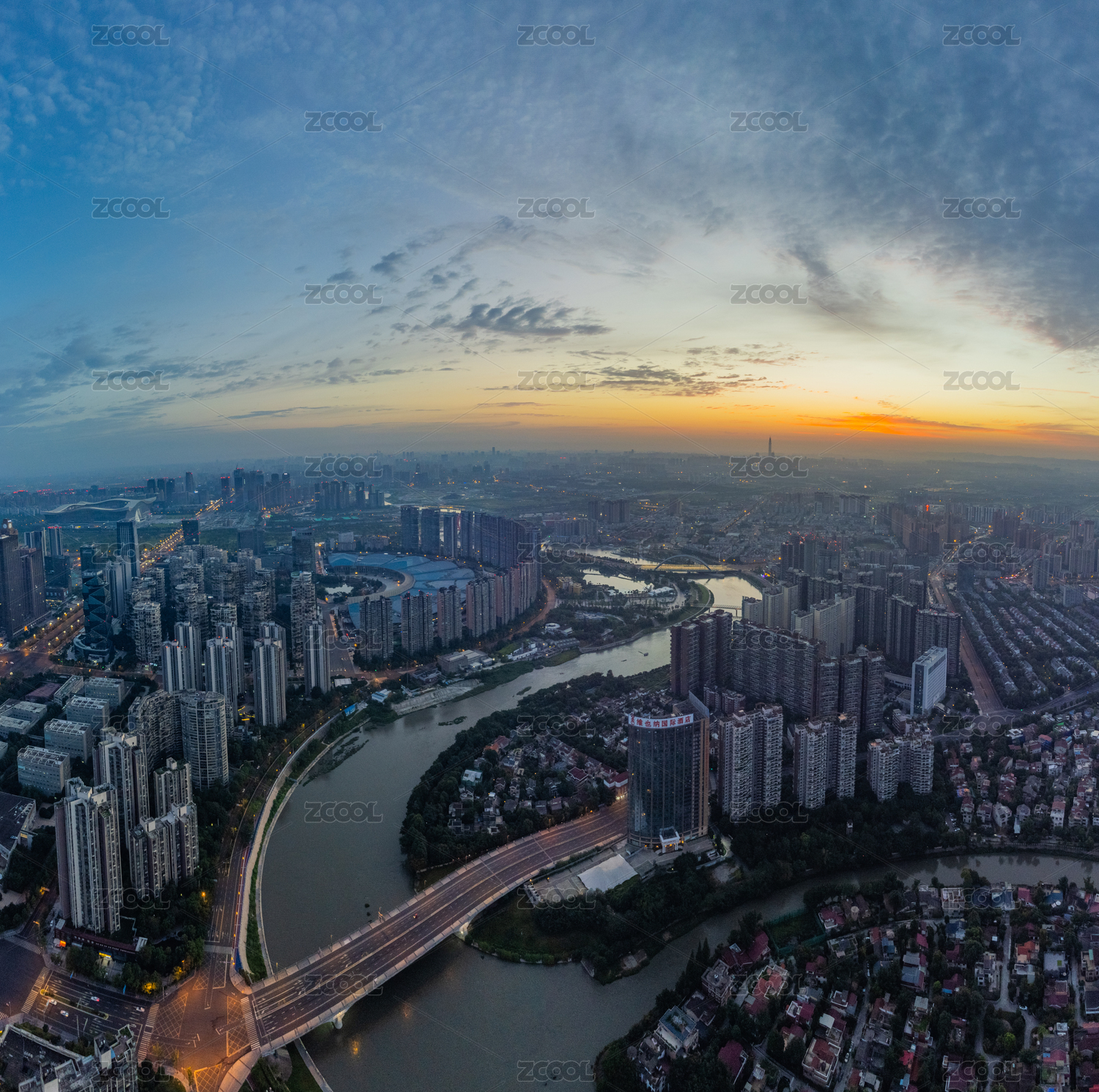 成都高新区桂龙大桥黎明日出航拍