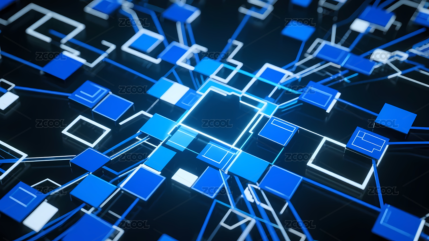 蓝色方块与白色线条网络结构
