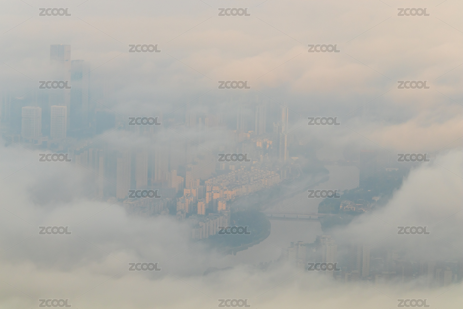 高空俯瞰晨雾中的厦门市