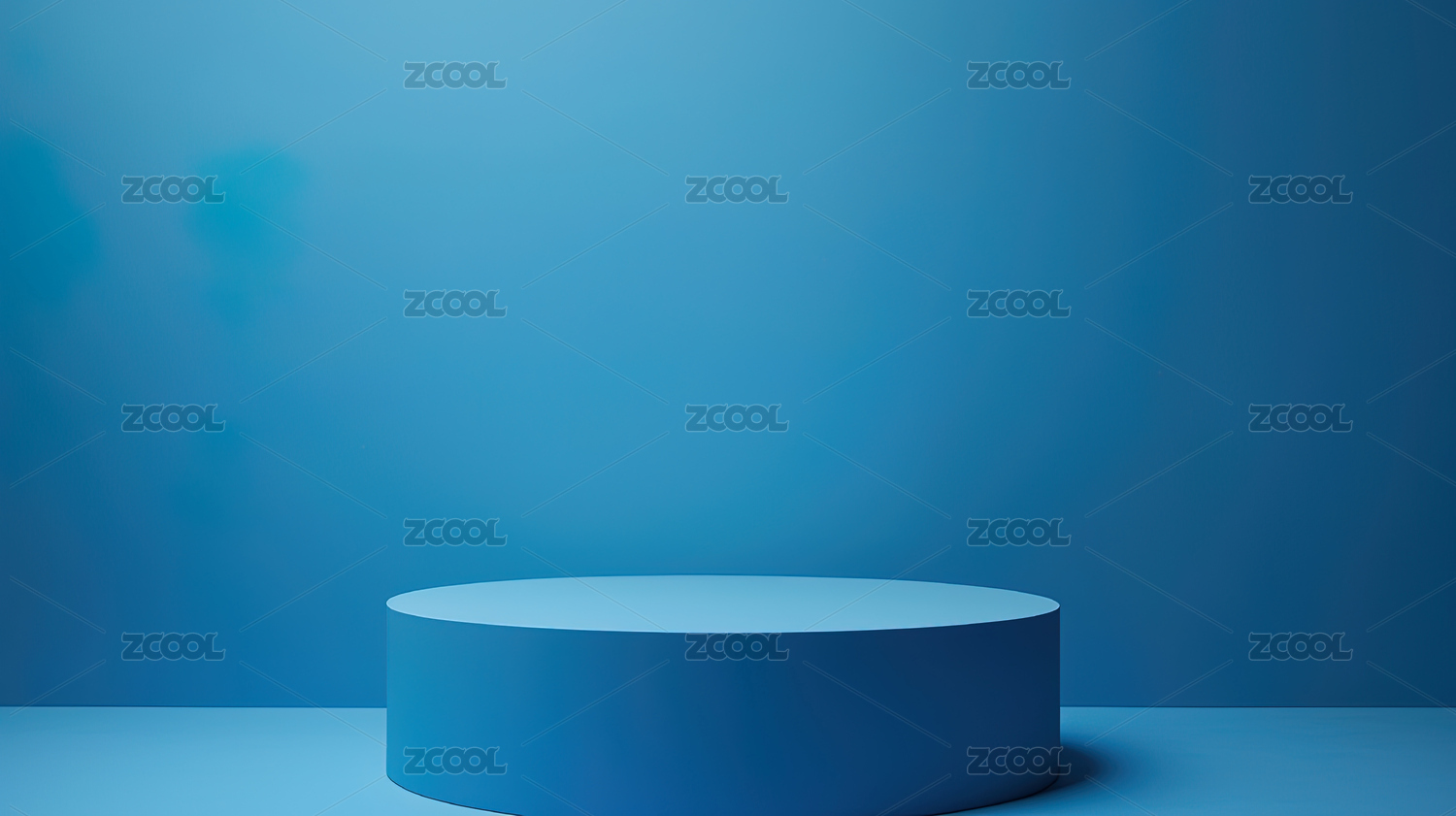 蓝色背景下的简约展示台